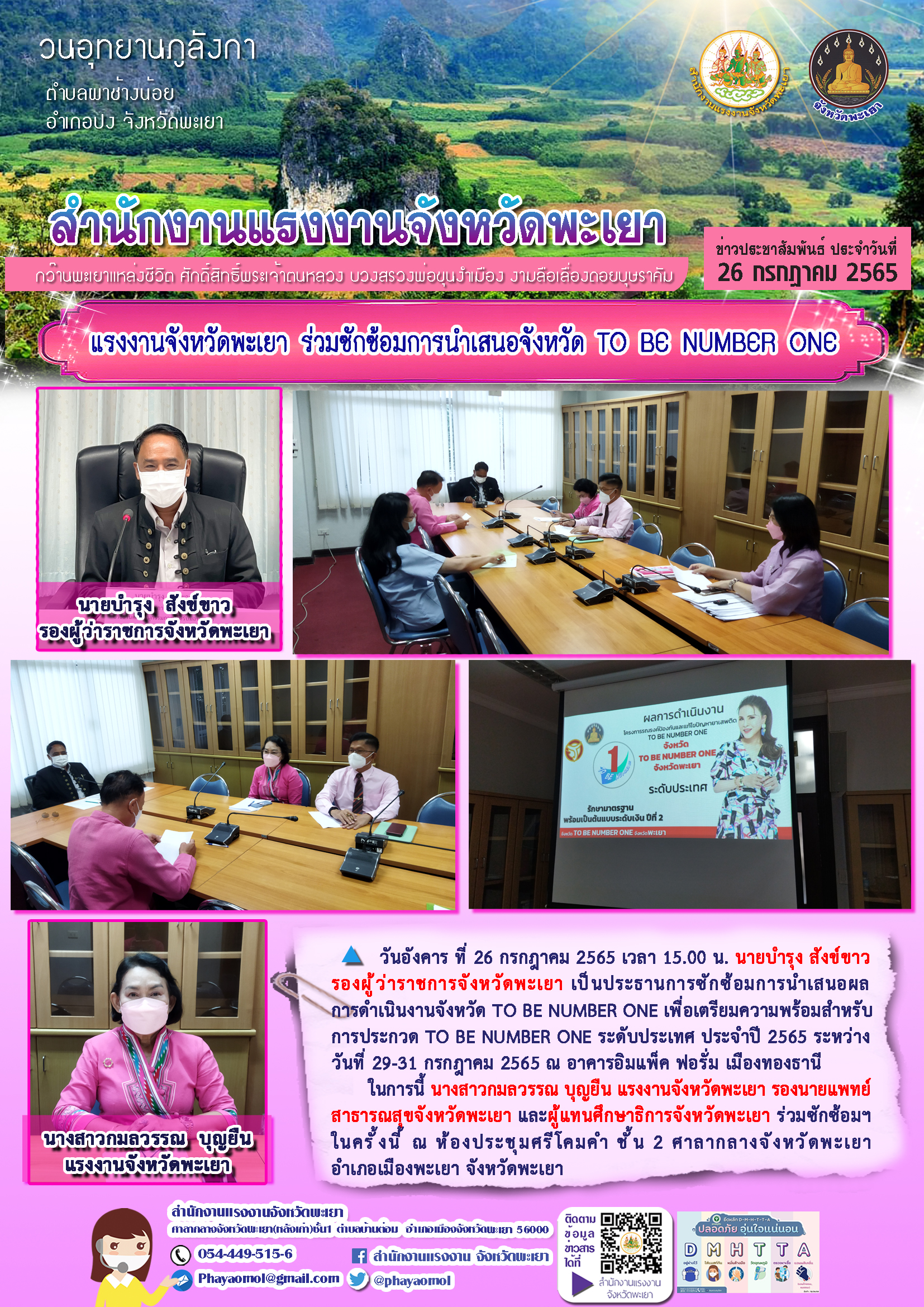 แรงงานจังหวัดพะเยา ร่วมซักซ้อมการนำเสนอจังหวัด TO BE NUMBER ONE
