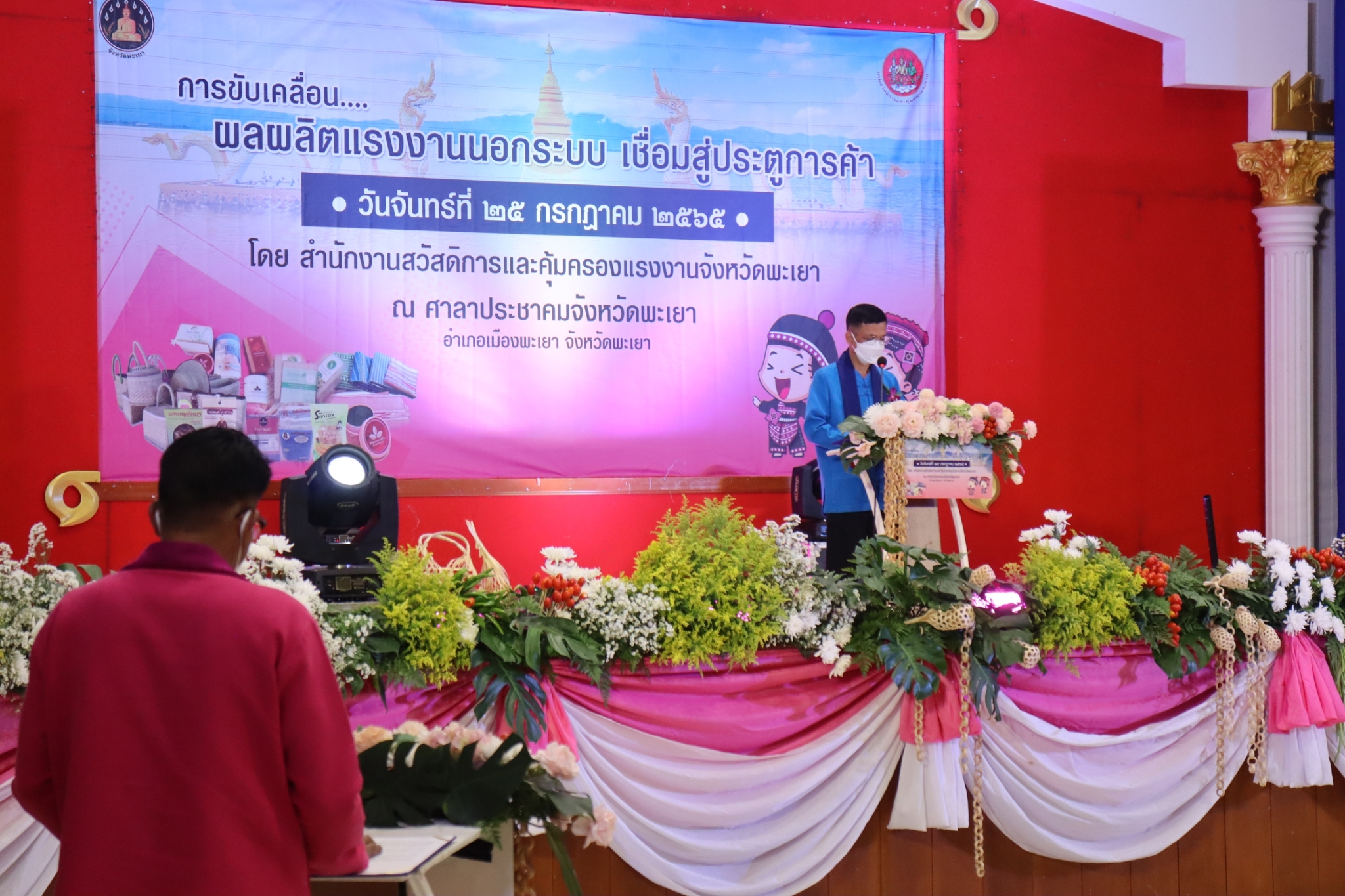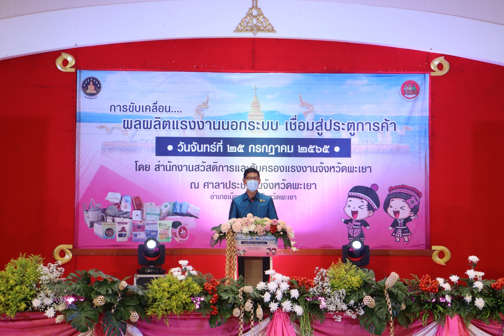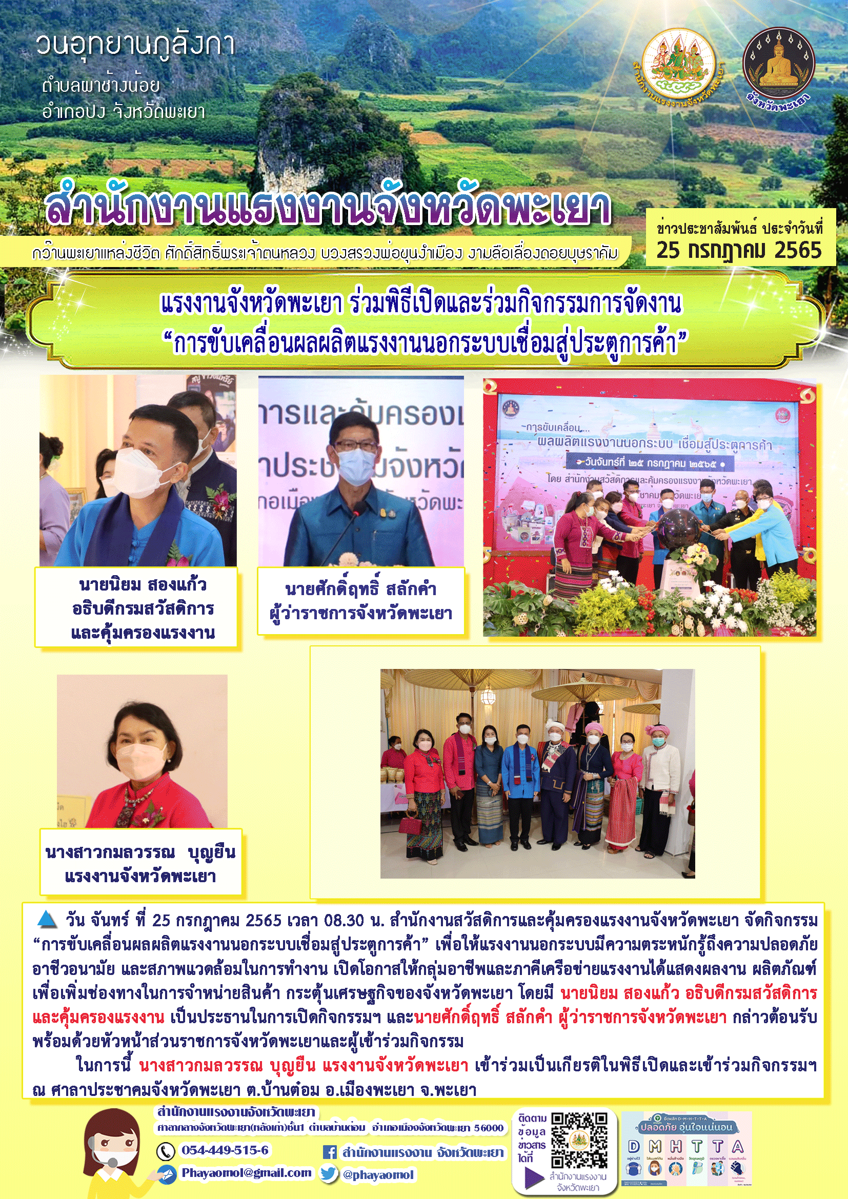 แรงงานจังหวัดพะเยา ร่วมพิธีเปิดและร่วมกิจกรรมการจัดงาน “การขับเคลื่อนผลผลิตแรงงานนอกระบบเชื่อมสู่ประตูการค้า”