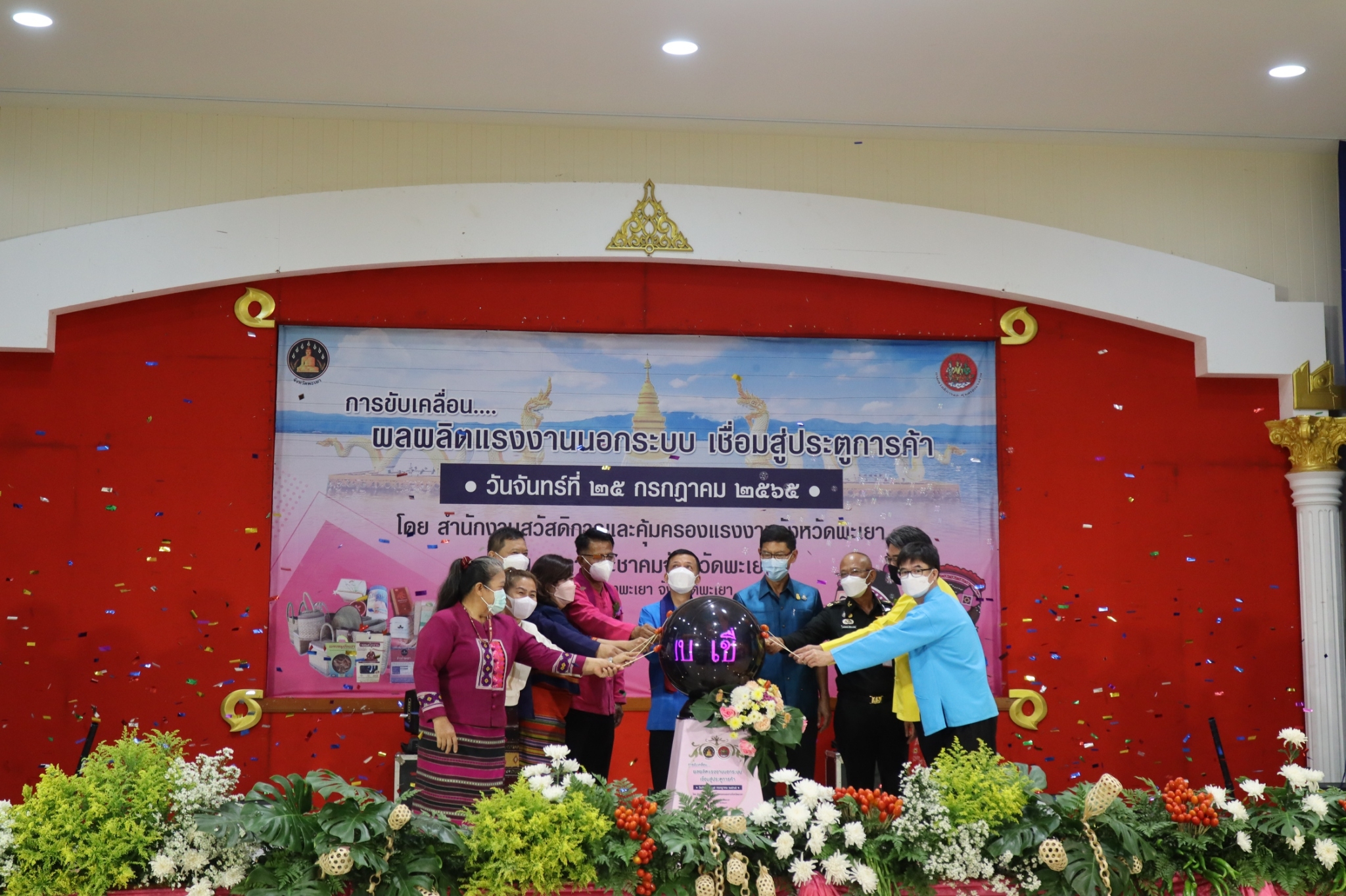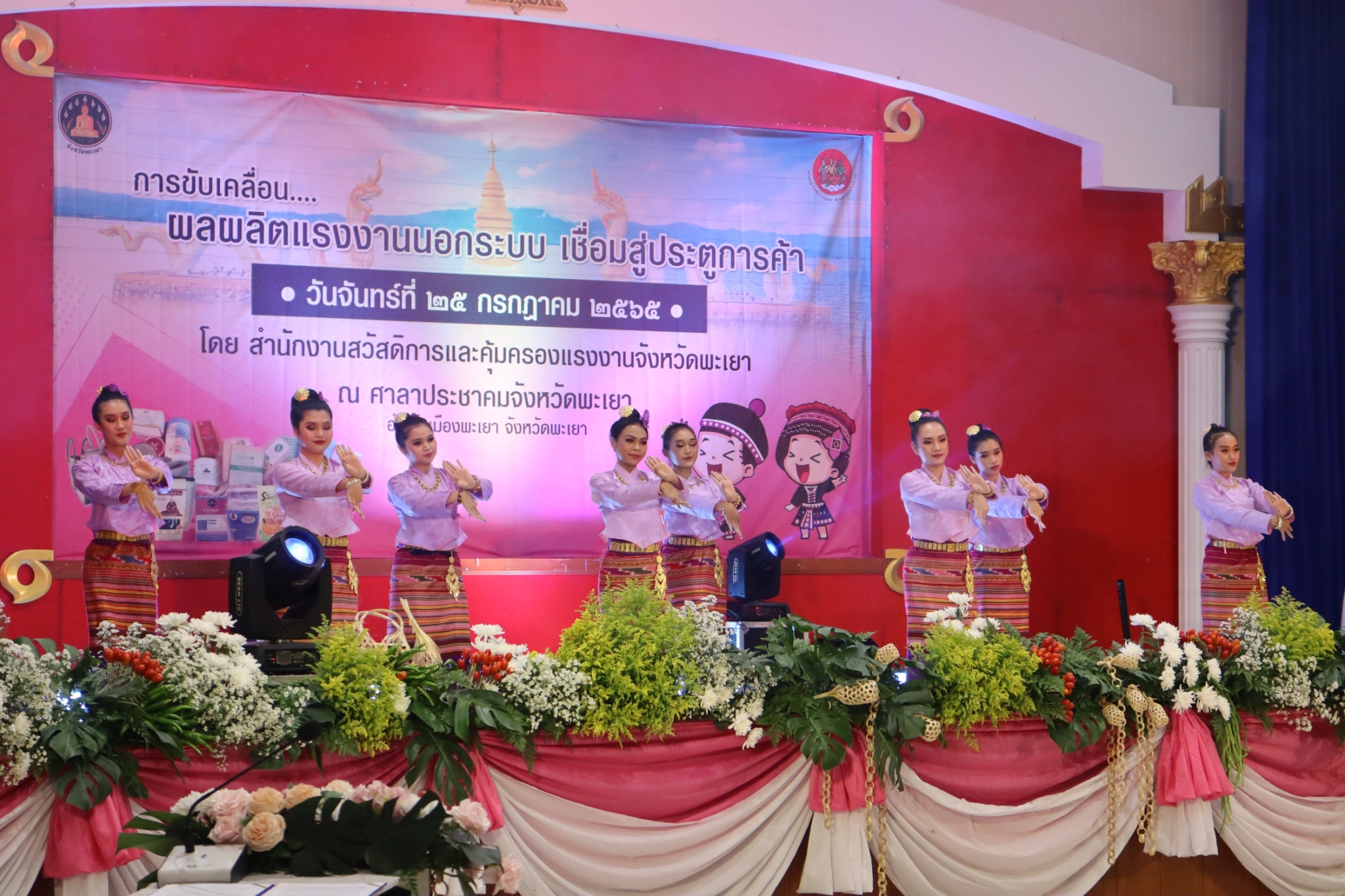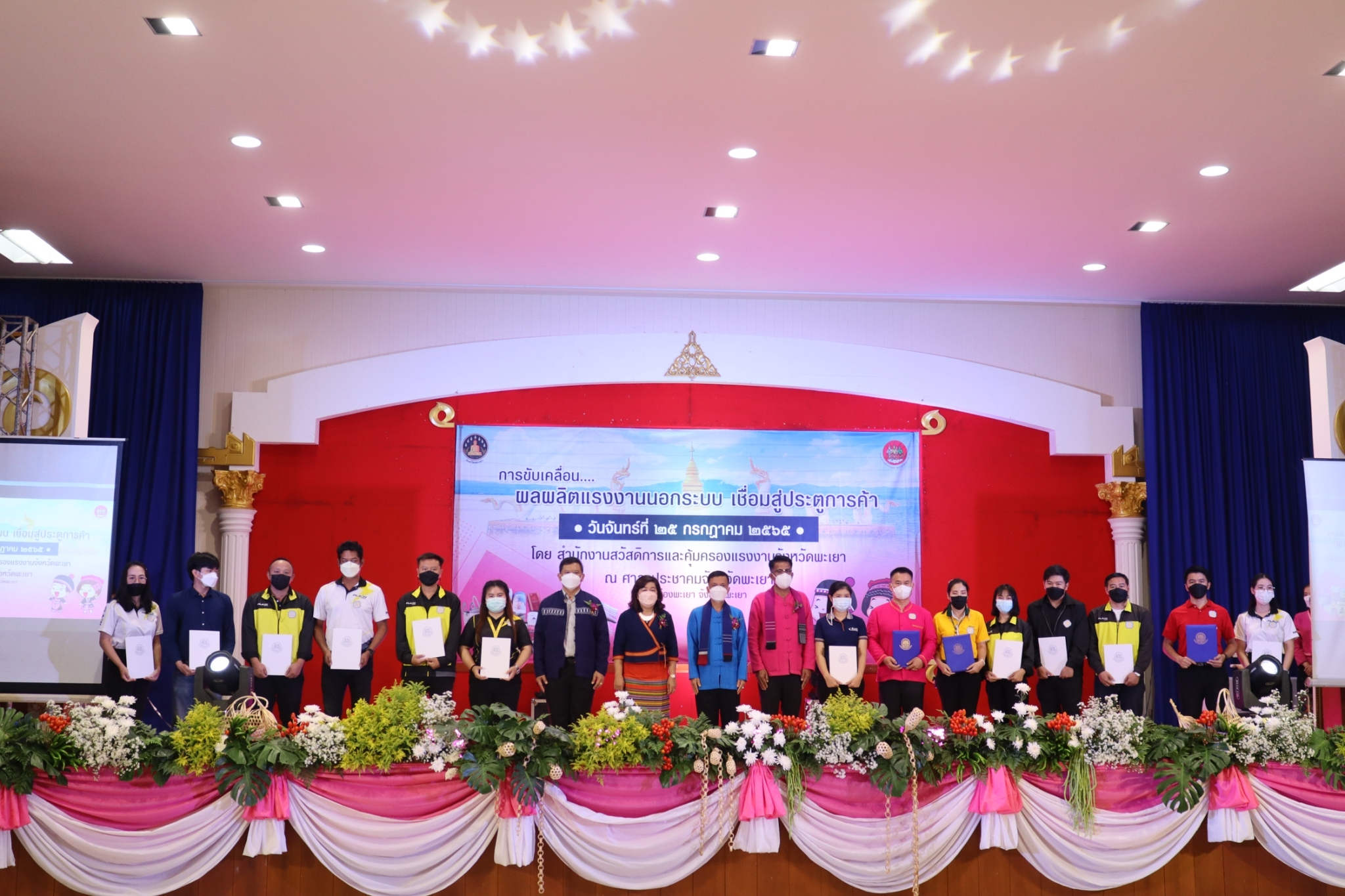 แรงงานจังหวัดพะเยา ร่วมพิธีเปิดและร่วมกิจกรรมการจัดงาน “การขับเคลื่อนผลผลิตแรงงานนอกระบบเชื่อมสู่ประตูการค้า”