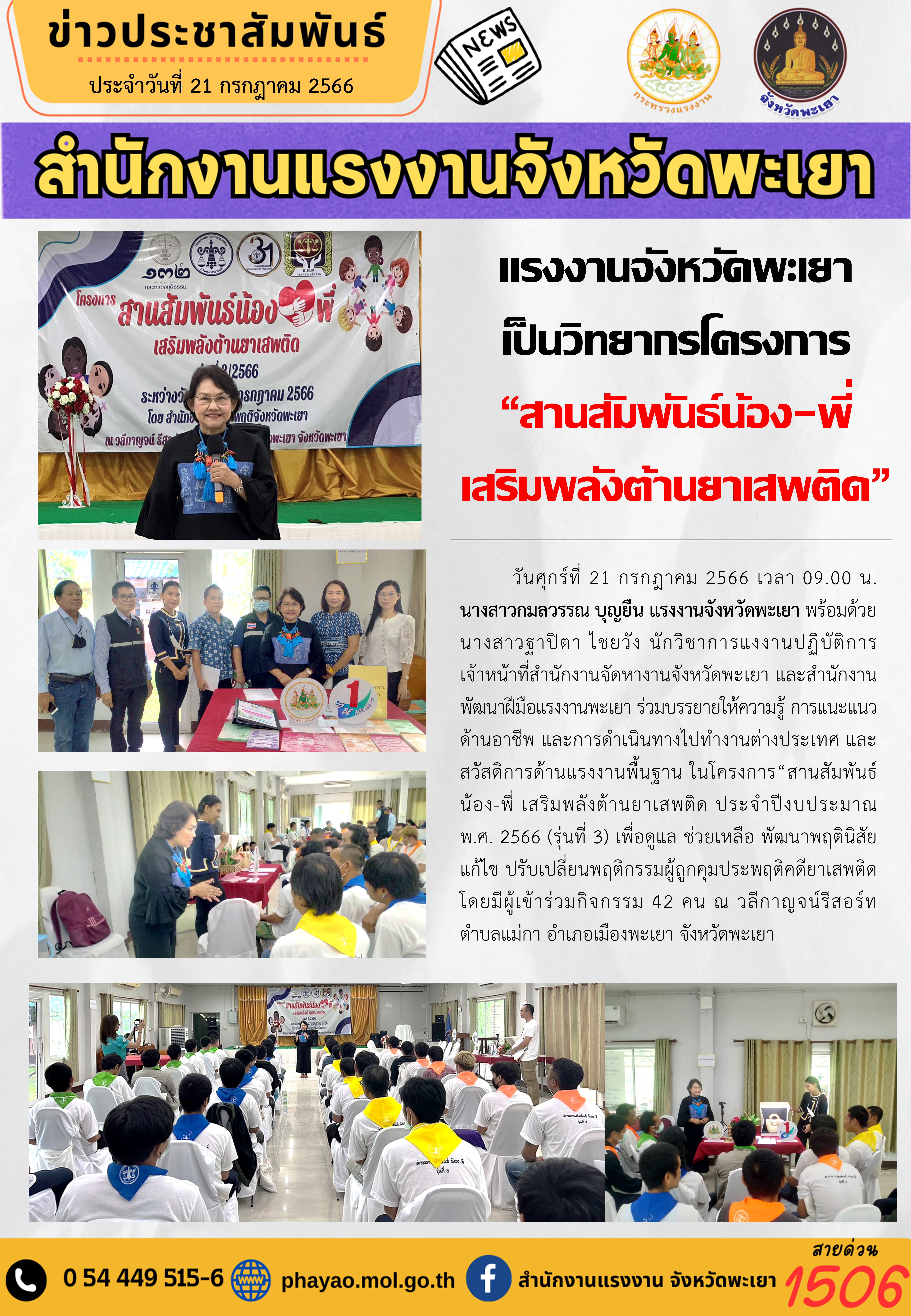 สรจ.พะเยา เป็นวิทยากรโครงการ “สานสัมพันธ์น้อง-พี่ เสริมพลังต้านยาเสพติด”