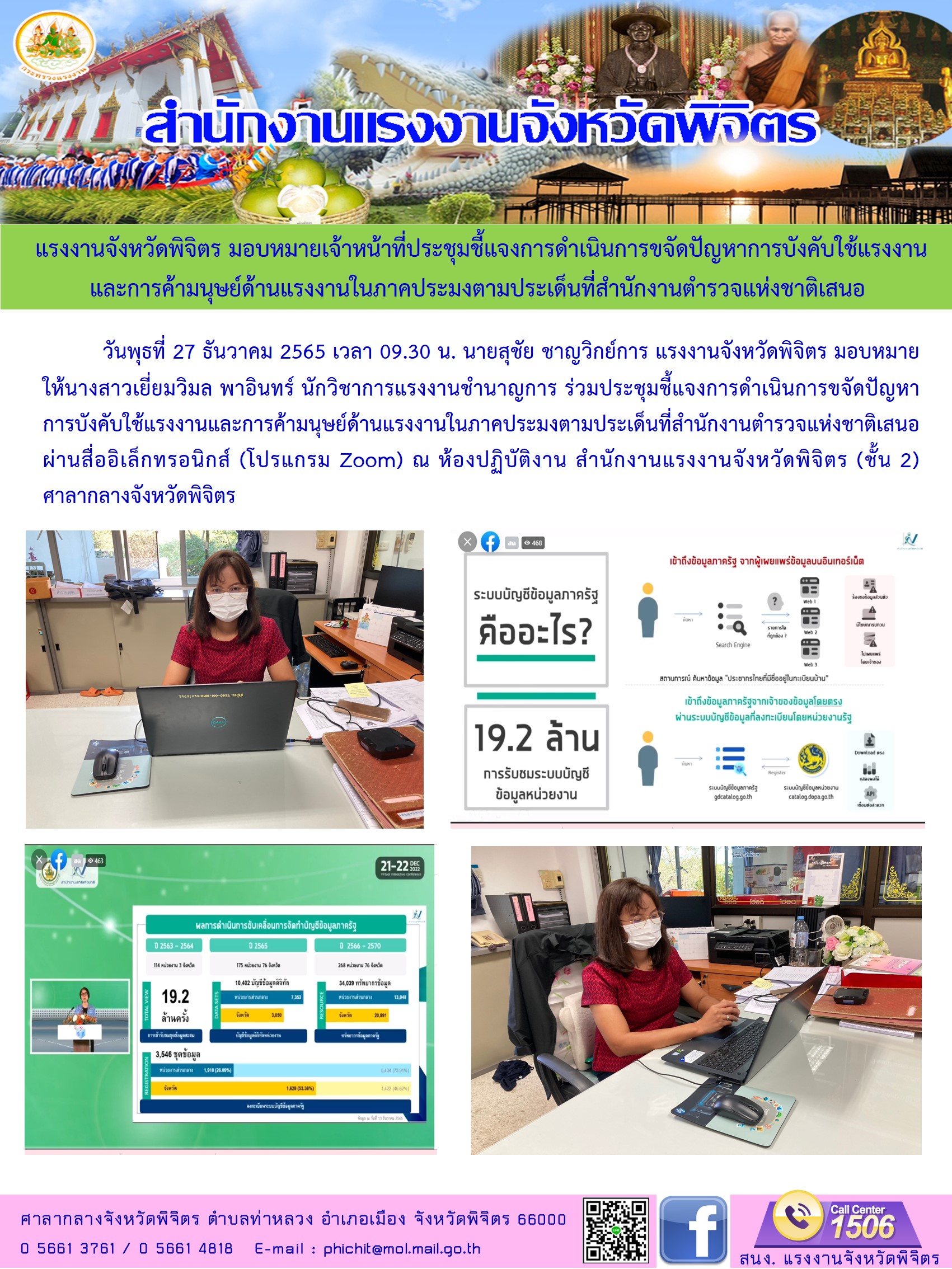 แรงงานจังหวัดพิจิตร มอบหมายเจ้าหน้าที่ประชุมชี้แจงการดำเนินการขจัดปัญหาการบังคับใช้แรงงาน