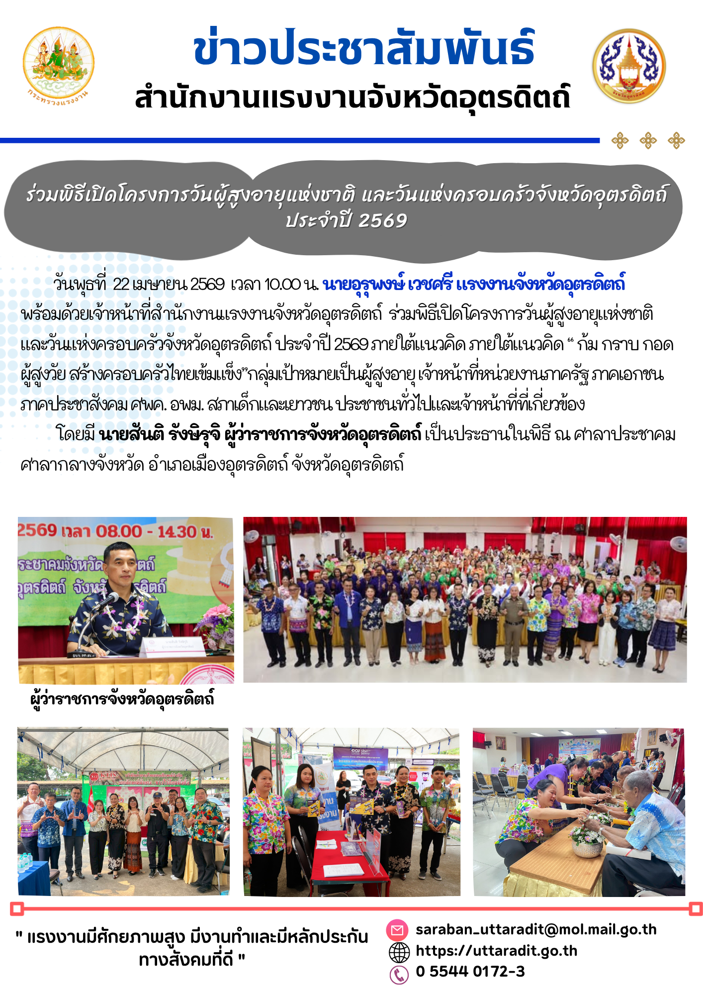 สรจ.อุตรดิตถ์ ร่วมพิธีเปิดโครงการวันผู้สูงอายุแห่งชาติ และวันแห่งครอบครัวจังหวัดอุตรดิตถ์ ประจำปี 2569
