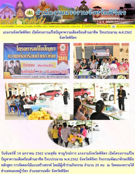 แรงงานจังหวัดพิจิตร เปิดโครงการแก้ไขปัญหาความเดือดร้อนด้านอาชีพ ปีงบประมาณ พ.ศ.2562 จังหวัดพิจิตร