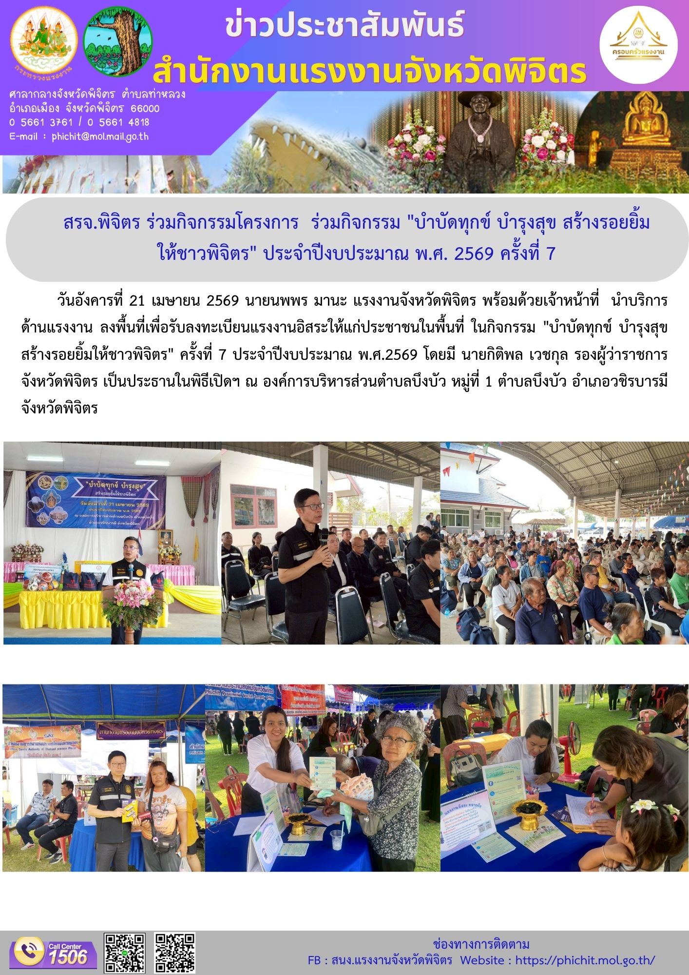 สรจ.พิจิตร ร่วมกิจกรรมโครงการ ร่วมกิจกรรม "บำบัดทุกข์ บำรุงสุข สร้างรอยยิ้มให้ชาวพิจิตร" ประจำปีงบประมาณ พ.ศ. 2569 ครั้งที่ 7