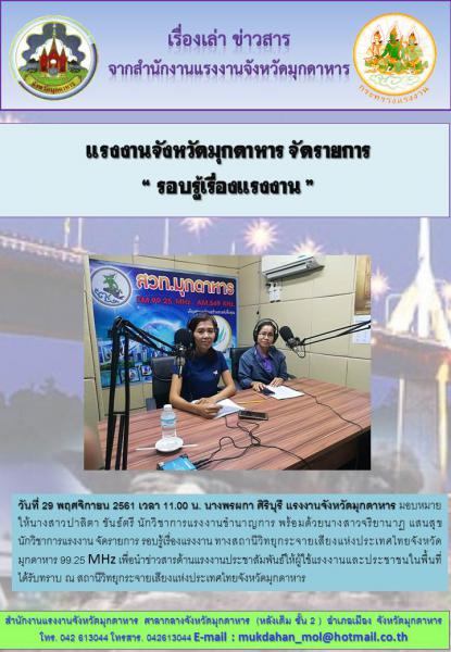 แรงงานจังหวัดมุกดาหาร จัดรายการ “ รอบรู้เรื่องแรงงาน ”
