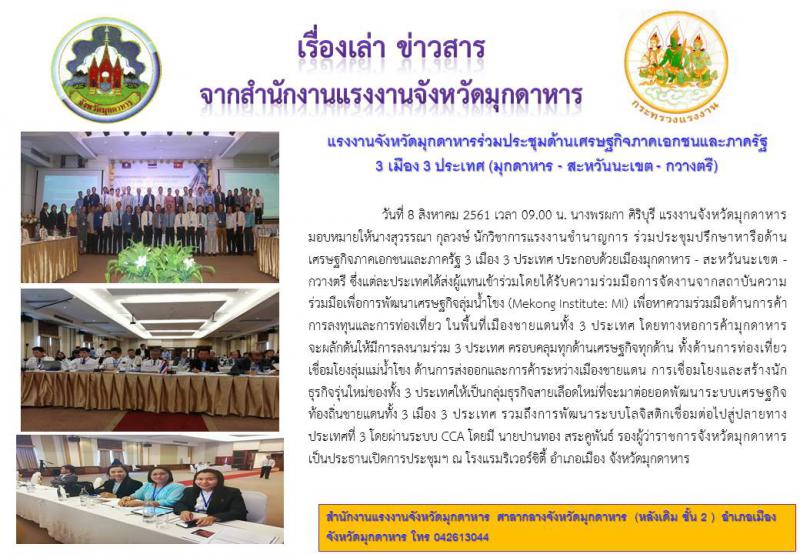 แรงงานจังหวัดมุกดาหาร ร่วมประชุมด้านเศรษฐกิจภาคเอกชนและภาครัฐ 3 เมือง 3 ประเทศ (มุกดาหาร – สะหวันนะเขต – กวางตรี)