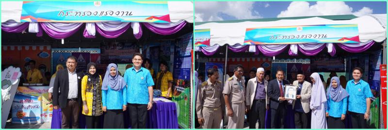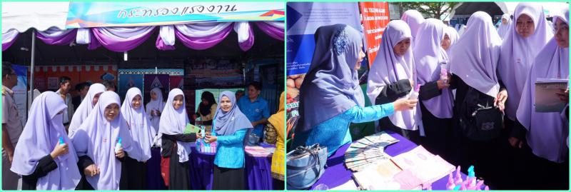 วันจันทร์ที่ 7 มกราคม 2562 เวลา 08.30 น. นางสาวมาลี ขวัญเจริญ แรงงานจังหวัดยะลา ร่วมงานมหกรรมวิชาการสู่ความเป็นเลิศ และร่วมออกบูธนิทรรศการสาธิตอาชีพอิสระ หลักสูตรการทำโลชั่นกันยุงกลิ่นตะไคร้หอม โดยอาสาสมัครแรงงานจังหวัดยะลา พิธีเปิดโดย นายอดินันท์ ปากบารา ผู้ช่วยรัฐมนตรีประจำนายกรัฐมนตรี ณ โรงเรียนธรรมวิทยามูลนิธิ อำเภอเมือง จังหวัดยะลา