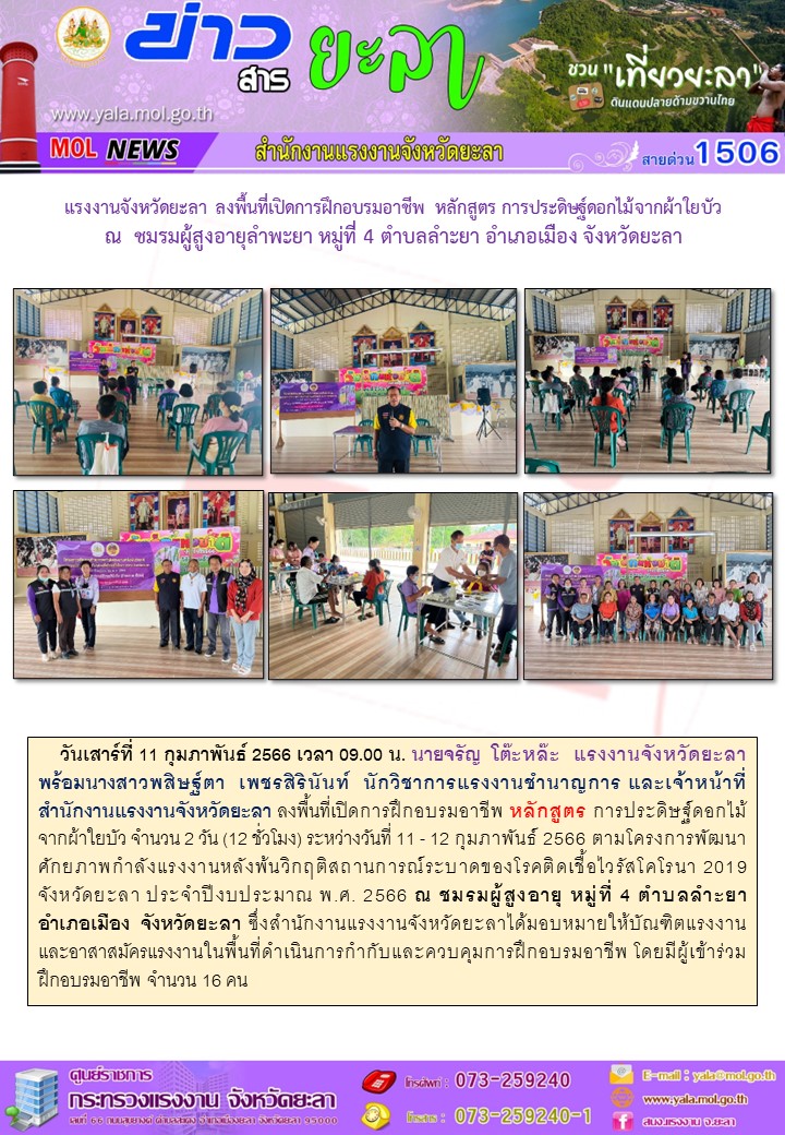 สรจ.ยะลา ลงพื้นที่เปิดการฝึกอบรมอาชีพ หลักสูตร การประดิษฐ์ดอกไม้จากผ้าใยบัว ณ ชมรมผู้สูงอายุลำพะยา