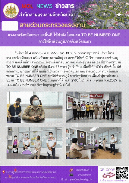 แรงงานจังหวัดยะลา ลงพื้นที่ ให้กำลัง ใจชมรม TO BE NUMBER ONE การไฟฟ้าส่วนภูมิภาคจังหวัดยะลา