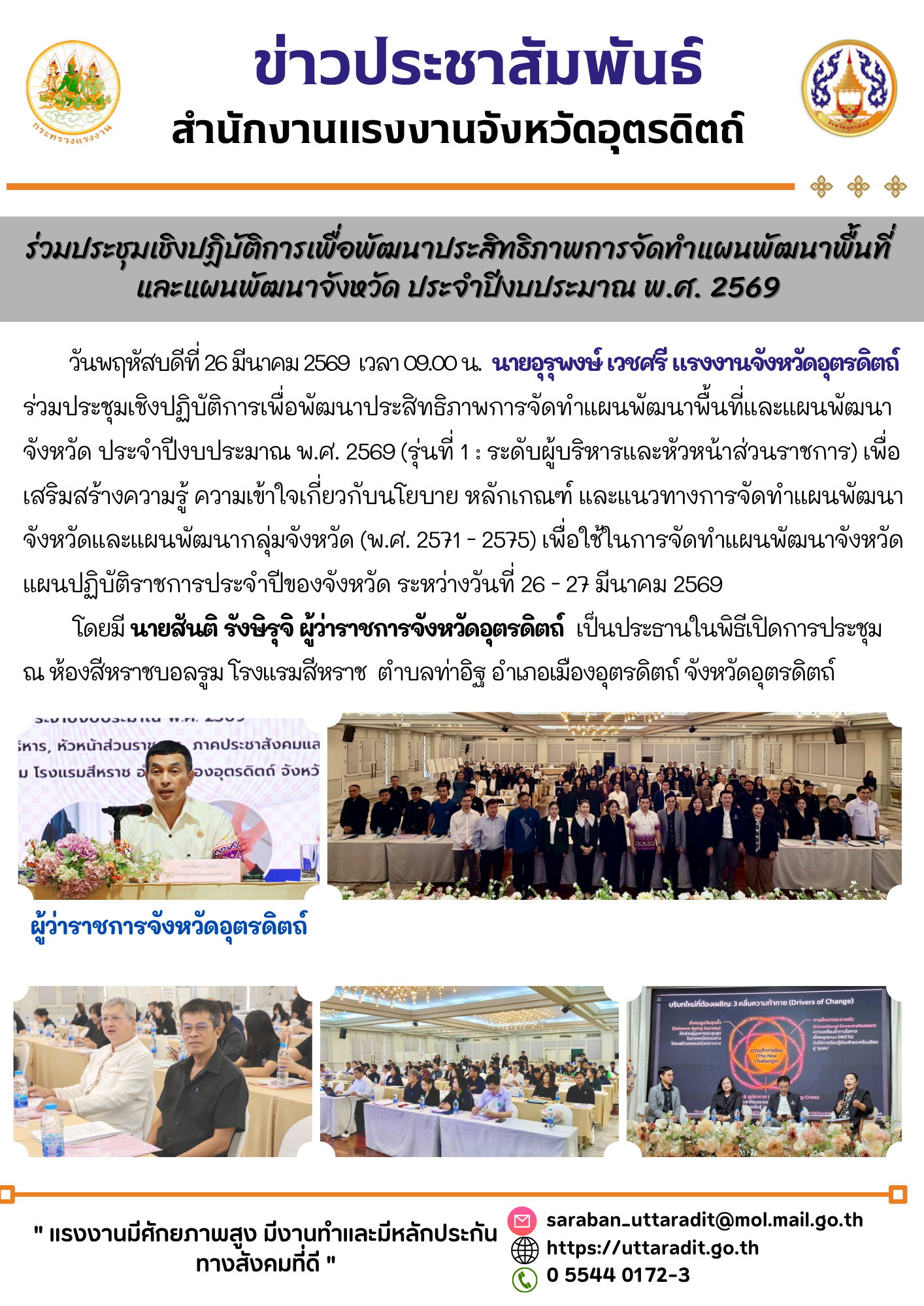 สรจ.อุตรดิตถ์ ร่วมประชุมเชิงปฏิบัติการเพื่อพัฒนาประสิทธิภาพการจัดทำแผนพัฒนาพื้นที่และแผนพัฒนาจังหวัด ประจำปีงบประมาณ พ.ศ. 2569