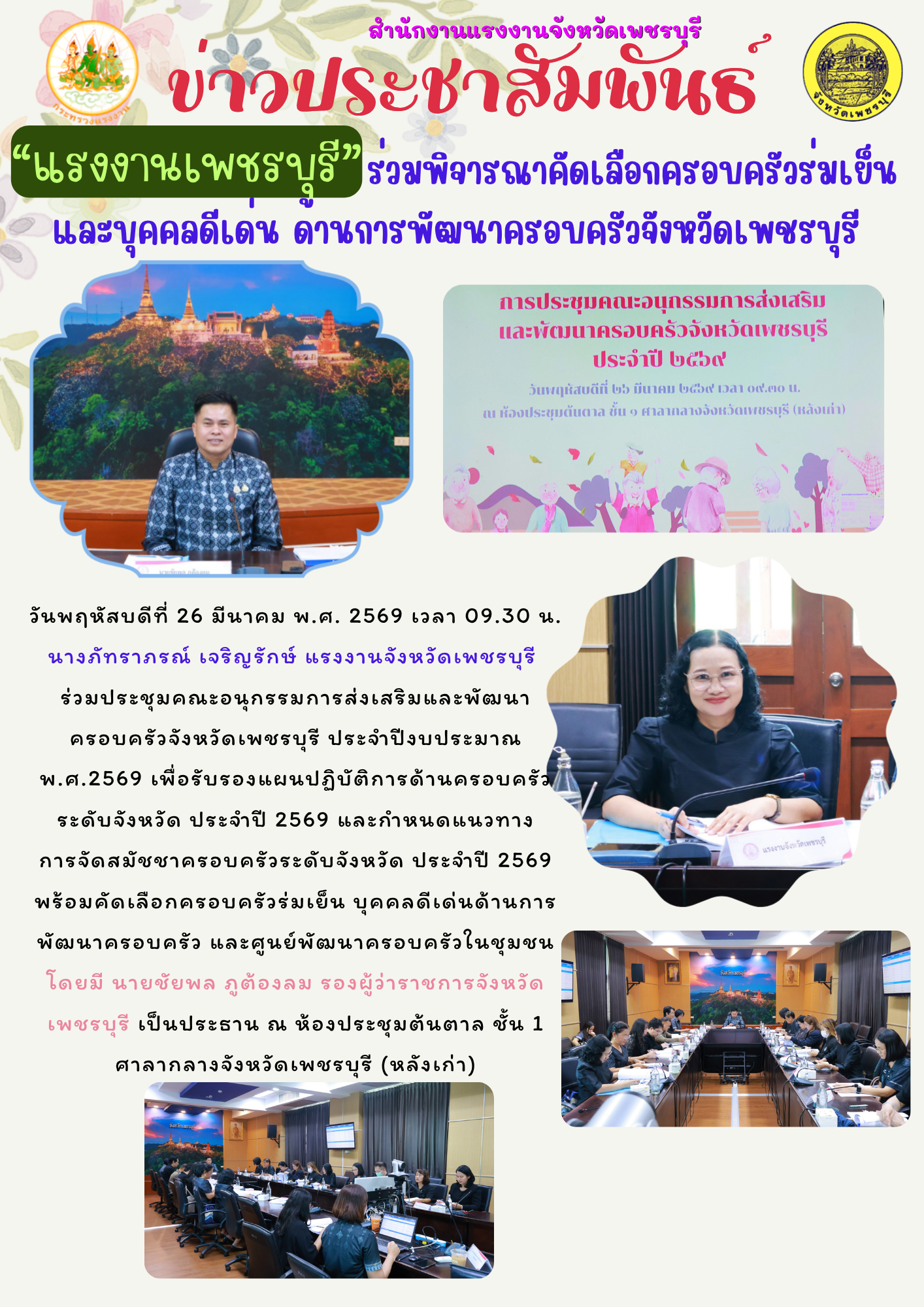 “แรงงานจังหวัดเพชรบุรี” ร่วมพิจารณาคัดเลือกครอบครัวร่มเย็น และบุคคลดีเด่น ด้านการพัฒนาครอบครัวจังหวัดเพชรบุรี