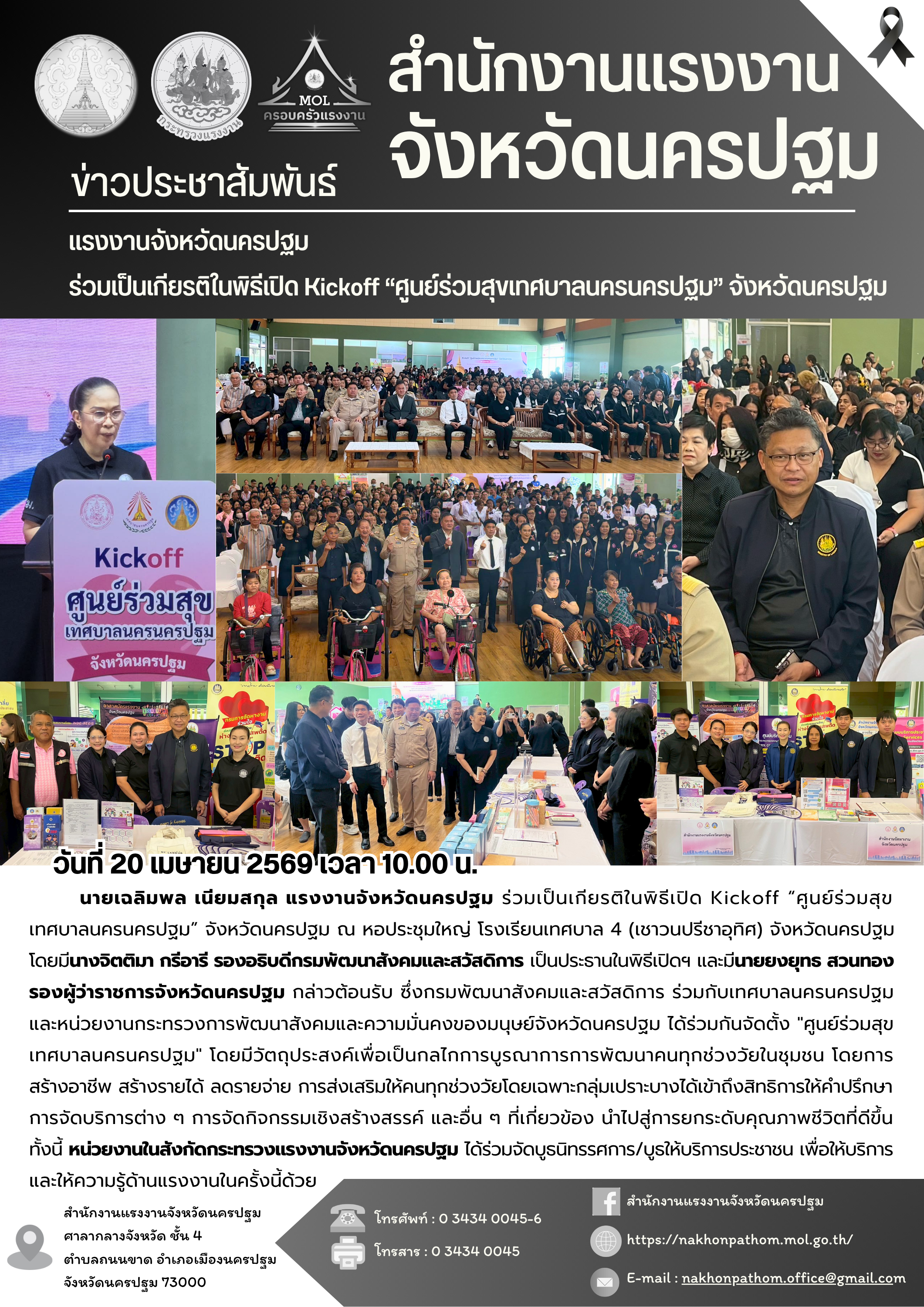 สรจ.นครปฐม ร่วมเป็นเกียรติในพิธีเปิด Kickoff “ศูนย์ร่วมสุขเทศบาลนครนครปฐม” จังหวัดนครปฐม