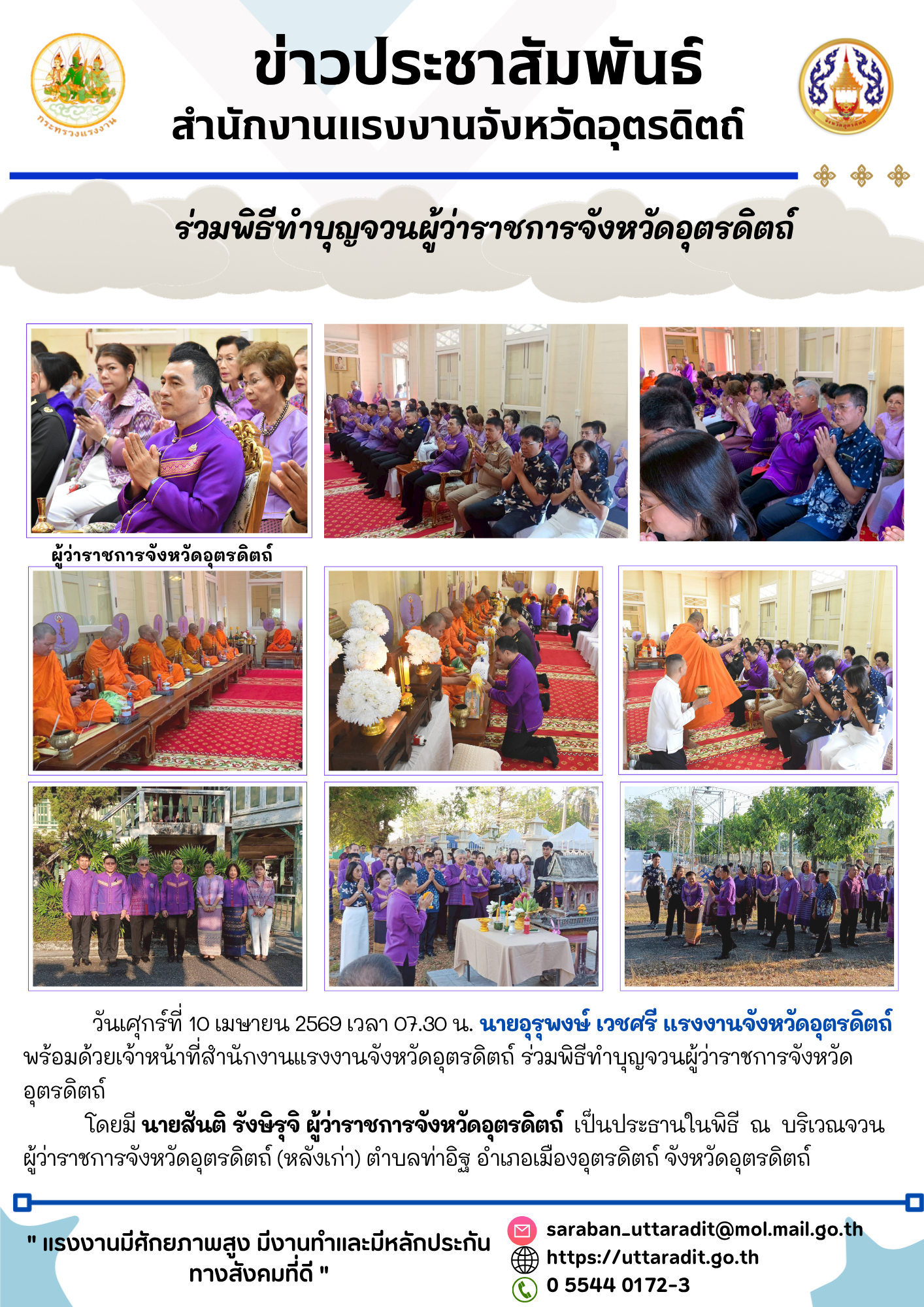 สรจ.อุตรดิตถ์ ร่วมพิธีทำบุญจวนผู้ว่าราชการจังหวัดอุตรดิตถ์