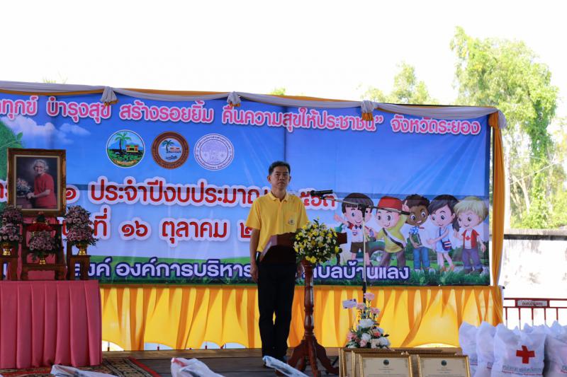 วันพุธที่ 16 ตุลาคม 2562 เวลา 8.30 น. นายสุรศักดิ์ เจริญศิริโชติ ผู้ว่าราชการจังหวัดระยอง เป็นประธานโครงการ “หน่วยบำบัดทุกข์ บำรุงสุข สร้างรอยยิ้ม คืนความสุขให้ประชาชน” (โครงการจังหวัดเคลื่อนที่) ครั้งที่ 1 ประจำปีงบประมาณ 2563 ณ ศาลาอเนกประสงค์ องค์การบริหารส่วนตำบลบ้านแลง ต.บ้านแลง อ.เมือง จ.ระยอง โดยได้มอบถุงยังชีพ 150 ชุด มอบทุนการศึกษา และมอบรถจักรยานให้แก่นักเรียน จำนวน 10 คัน ออกตรวจเยี่ยมให้ความช่วยเหลือผู้ยากไร้ในพื้นที่ ตามโครงการ “รักระยอง ช่วยระยอง คืนความสุขให้คนระยอง” และเยี่ยมชมกิจกรรมของส่วนราชการ/หน่วยงานที่เข้าร่วมโครงการ โดย นางสาว กรจิรัฏฐ์ พงจันทร์ศธร แรงงานจังหวัดระยอง พร้อมหัวหน้าส่วนราชการสังกัดกระทรวงแรงงานจังหวัดระยอง ข้าราชการ เจ้าหน้าที่ และอาสาสมัครแรงงานในพื้นที่ ได้นำภารกิจไปเผยแพร่ประชาสัมพันธ์และให้บริการประชาชน