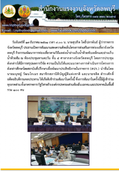 แรงงานจังหวัดลพบุรี ร่วมการสัมมนาแสดงความคิดเห็นโครงการส่งเสริมการท่องเที่ยวจังหวัดลพบุรี