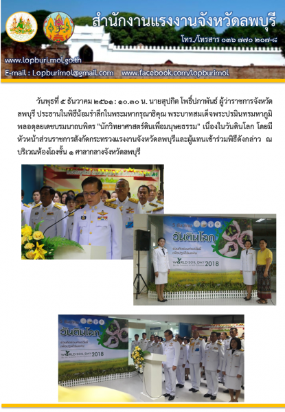 แรงงานจังหวัดลพบุรี ร่วมงานวันดินโลก ประจำปี 2561