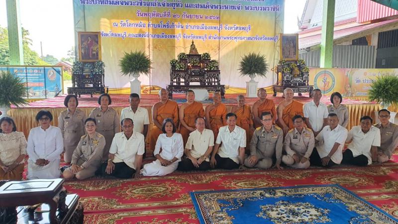 วันพฤหัสบดีที่ 26 กันยายน 2562 : 14.00 น. พระครูโสภิตนิมมานการ ที่ปรึกษาเจ้าคณะอำเภอเมืองลพบุรี เจ้าอาวาสวัดโพธิ์เก้าตัน ประธานฝ่ายสงฆ์ นายสุปกิต โพธิ์ปภาพันธ์ ผู้ว่าราชการจังหวัดลพบุรี ประธานฝ่ายฆราวาส นำหัวหน้าส่วนราชการ ข้าราชการ ทหาร ตำรวจ องค์กรปกครองส่วนท้องถิ่น และประชาชน ร่วมประกอบพิธีเจริญพระพุทธมนต์ถวายพระพรชัยมงคลแด่ สมเด็จพระนางเจ้าสิริกิติ์ พระบรมราชินีนาถ พระบรมราชชนนีพันปีหลวง พระบาทสมเด็จพระวชิรเกล้าเจ้าอยู่ และสมเด็จพระนางเจ้าฯ พระบรมราชินี โดยมีคณะสงฆ์จากวัดต่างๆ ในเขตอำเภอเมืองลพบุรี ร่วมในพิธีดังกล่าว กว่า 300 รูป ณ วัดโคกหม้อ อำเภอเมืองลพบุรี จังหวัดลพบุรี ในการนี้ นางสาวปาริชาติ สวนใจ แรงงานจังหวัดลพบุรี พร้อมด้วยหัวส่วน ข้าราชการ และเจ้าหน้าที่หน่วยงานสังกัดกระทรวงแรงงานจังหวัดลพบุรี เข้าร่วมพิธี