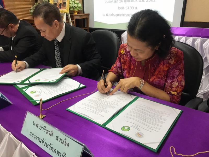 วันอังคารที่ 26 กุมภาพันธ์ 2562 : 13.00 น. นางสาวปาริชาติ สวนใจ แรงงานจังหวัดอุตรดิตถ์ รักษาราชการแทน แรงงานจังหวัดลพบุรี ร่วมเป็นเกียรติในพิธีลงนามบันทึกข้อตกลง (MOU) ความร่วมมือด้านพัฒนากำลังคน และมอบวุฒิบัตรผู้ผ่านการฝึกอบรมหลักสูตรยกระดับฝีมือ สาขาการพัฒนาผลิตภัณฑ์โอทอป (ผัดไทยกึ่งสำเร็จรูป) ณ ห้องประชุมสภาเทศบาลตำบลเขาพระงาม อำเภอเมือง จังหวัดลพบุรี จัดโดย สำนักงานพัฒนาฝีมือแรงงานลพบุรี