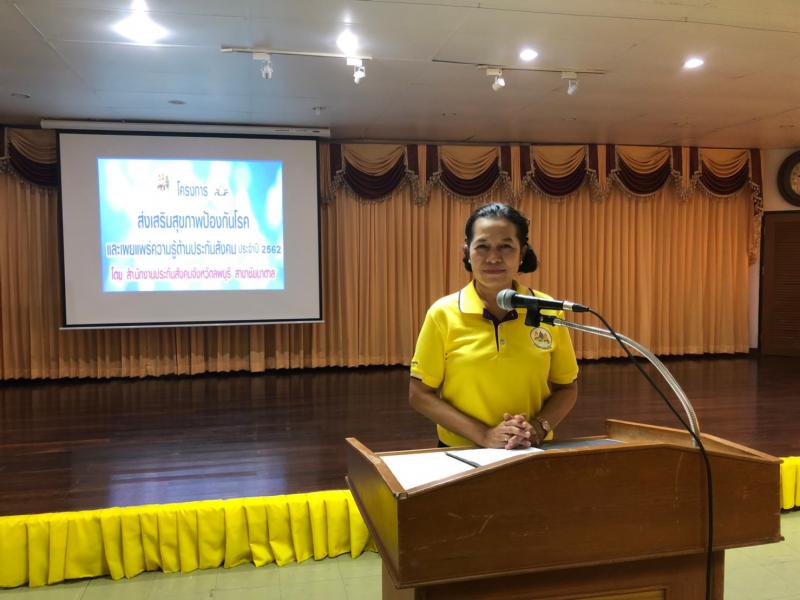 วันจันทร์ที่ 13 พฤษภาคม 2562 : 10.00 น. นางสาวปาริชาติ สวนใจ แรงงานจังหวัดอุตรดิตถ์รักษาราชการแทน แรงงานจังหวัดลพบุรี เป็นประธานเปิดโครงการส่งเสริมสุขภาพป้องกันโรค และเผยแพร่ความรู้ประกันสังคม ประจำปี 2562 และร่วมเป็นสักขีพยานการลงนาม MOU ส่งเสริมสุขภาพการป้องกันโรค ระหว่าง สำนักงานประกันสังคมจังหวัดลพบุรี สาขาชัยบาดาล กับเทศบาลตำบลลำนารายณ์ ณ เทศบาลตำบลลำนารายณ์ จัดโดย สำนักงานประกันสังคมจังหวัดลพบุรี สาขาชัยบาดาล โดยมีผู้เข้าร่วมโครงการ จำนวน 70 คน โดยได้รับความร่วมมือจาก เทศบาลตำบลลำนารายณ์ และโรงพยาบาลเกษมราษฎร์ สระบุรี