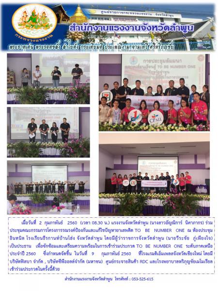 แรงงานจังหวัดลำพูน ร่วมประชุมคณะกรรมการโครงการรณรงค์ป้องกันและแก้ไขปัญหายาเสพติด TO BE NUMBER ONE