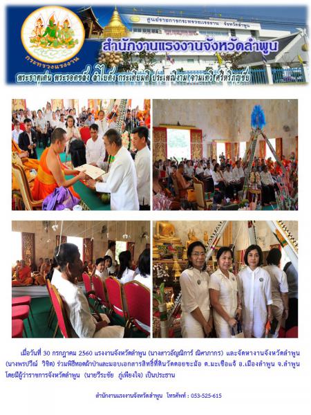 แรงงานจังหวัดลำพูน ร่วมพิธีทอดผ้าป่าและมอบเอกสารสิทธิ์ที่ดินวัดดอยขะม้อ