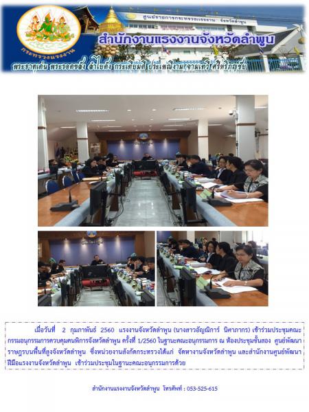 แรงงานจังหวัดลำพูน เข้าร่วมประชุมคณะกรรมอนุกรรมการควบคุมคนพิการจังหวัดลำพูน ครั้งที่ 1/2560