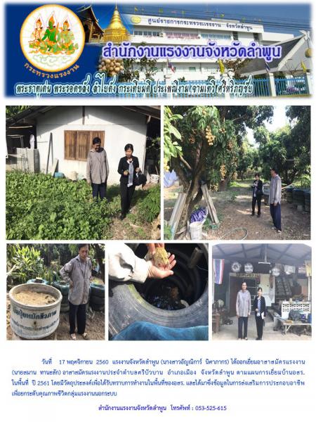 แรงงานจังหวัดลำพูน ได้ออกเยี่ยมอาสาสมัครแรงงานประจำตำบลศรีบัวบาน อำเภอเมือง จังหวัดลำพูน