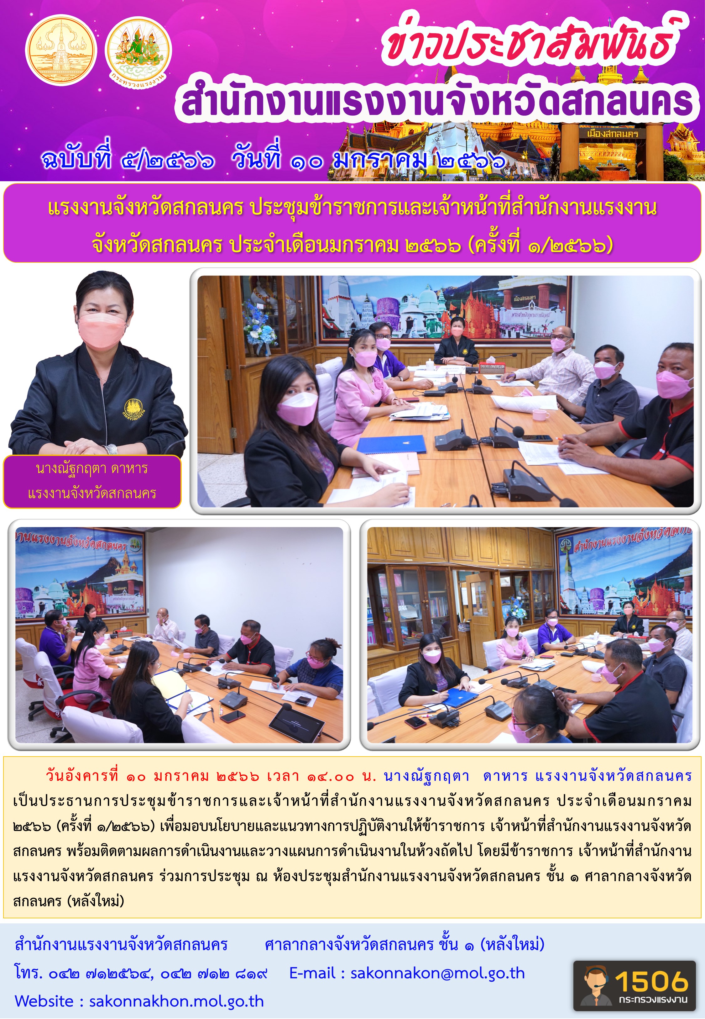 แรงงานจังหวัดสกลนคร ประชุมข้าราชการและเจ้าหน้าที่สำนักงานแรงงานจังหวัดสกลนคร ประจำเดือนมกราคม 2566 (ครั้งที่ 1/2566)