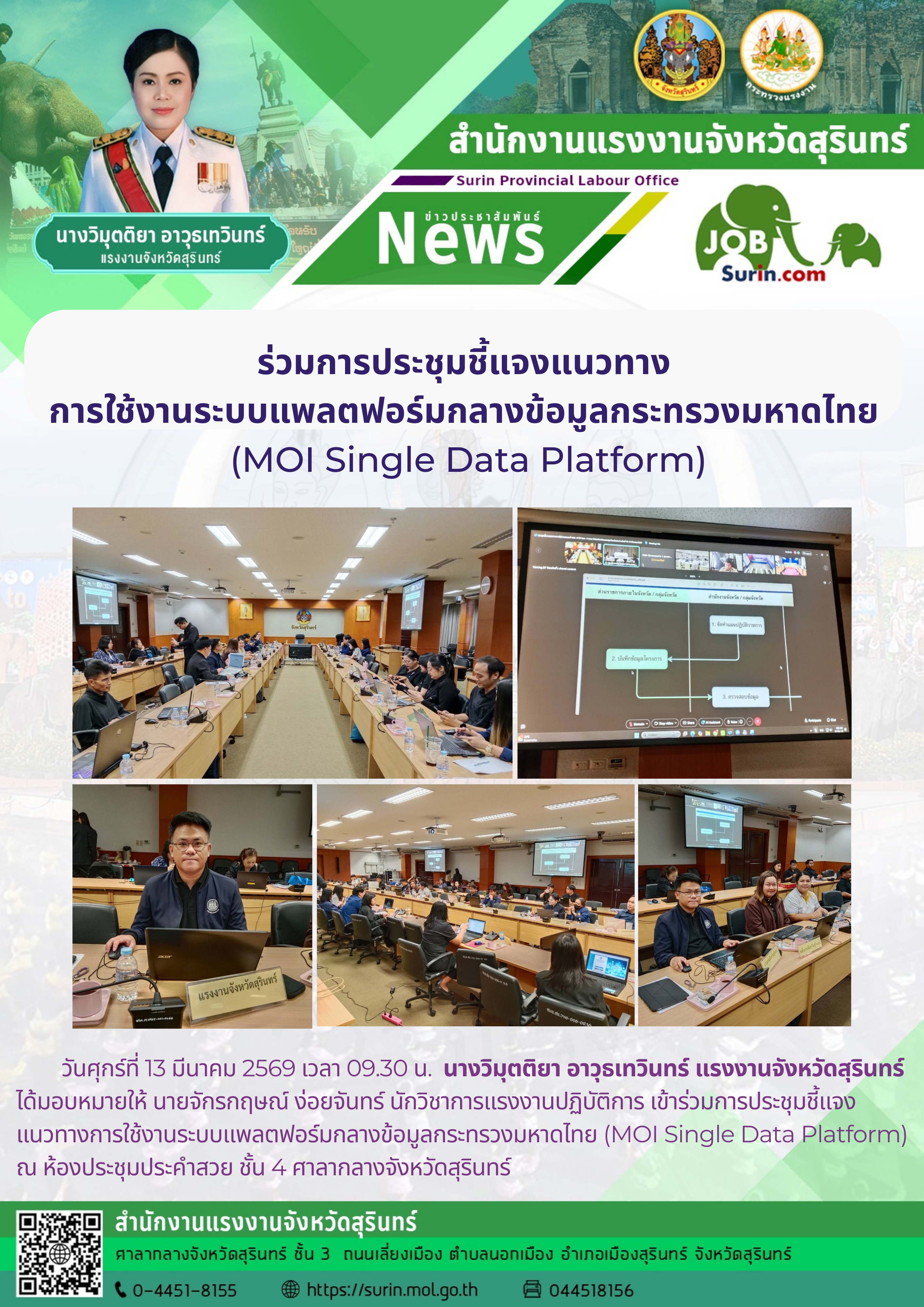แรงงานจังหวัดสุรินทร์ ร่วมการประชุมชี้แจงแนวทาง การใช้งานระบบแพลตฟอร์มกลางข้อมูลกระทรวงมหาดไทย (MOI Single Data Platform)