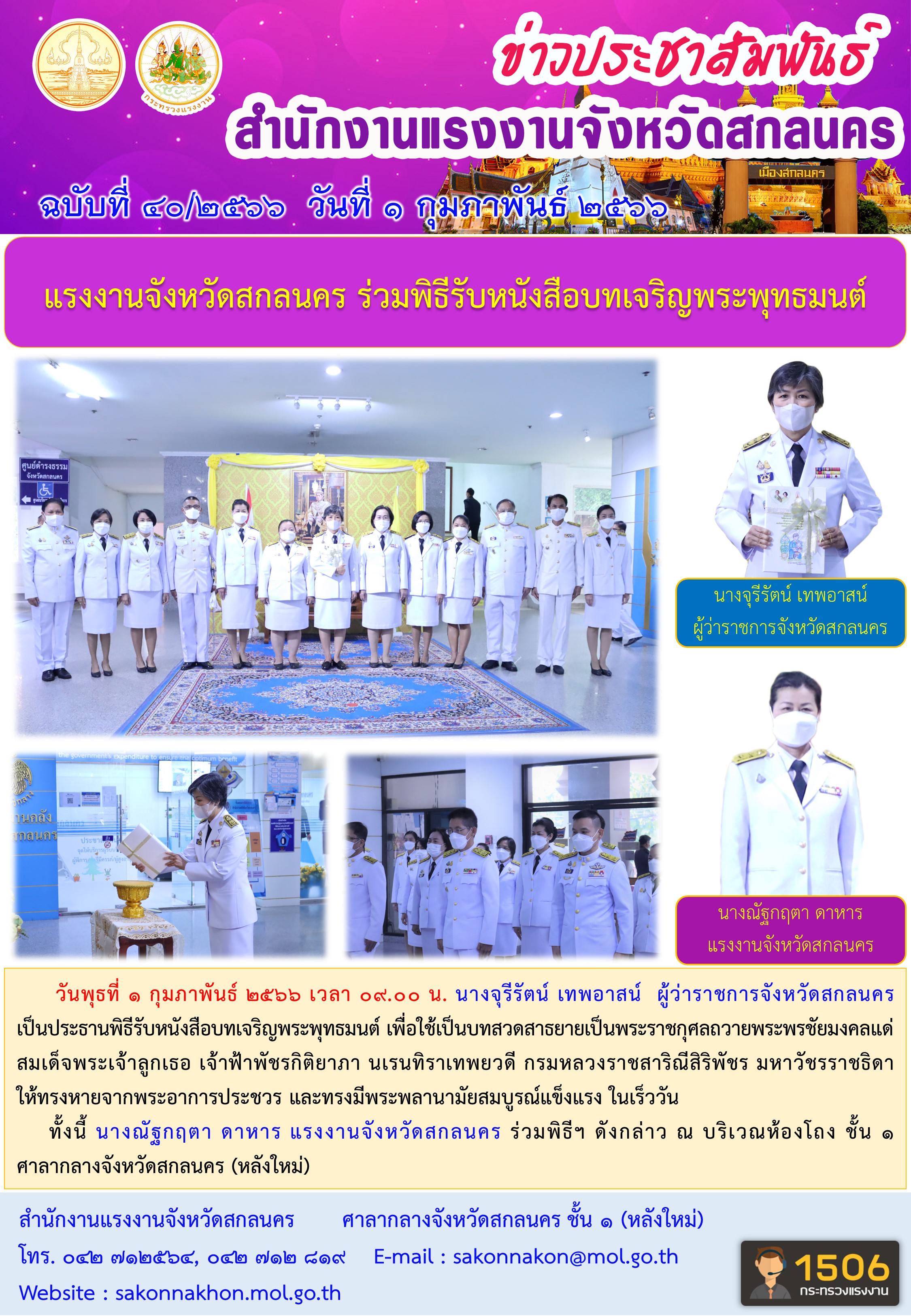 แรงงานจังหวัดสกลนคร ร่วมพิธีรับหนังสือบทเจริญพระพุทธมนต์