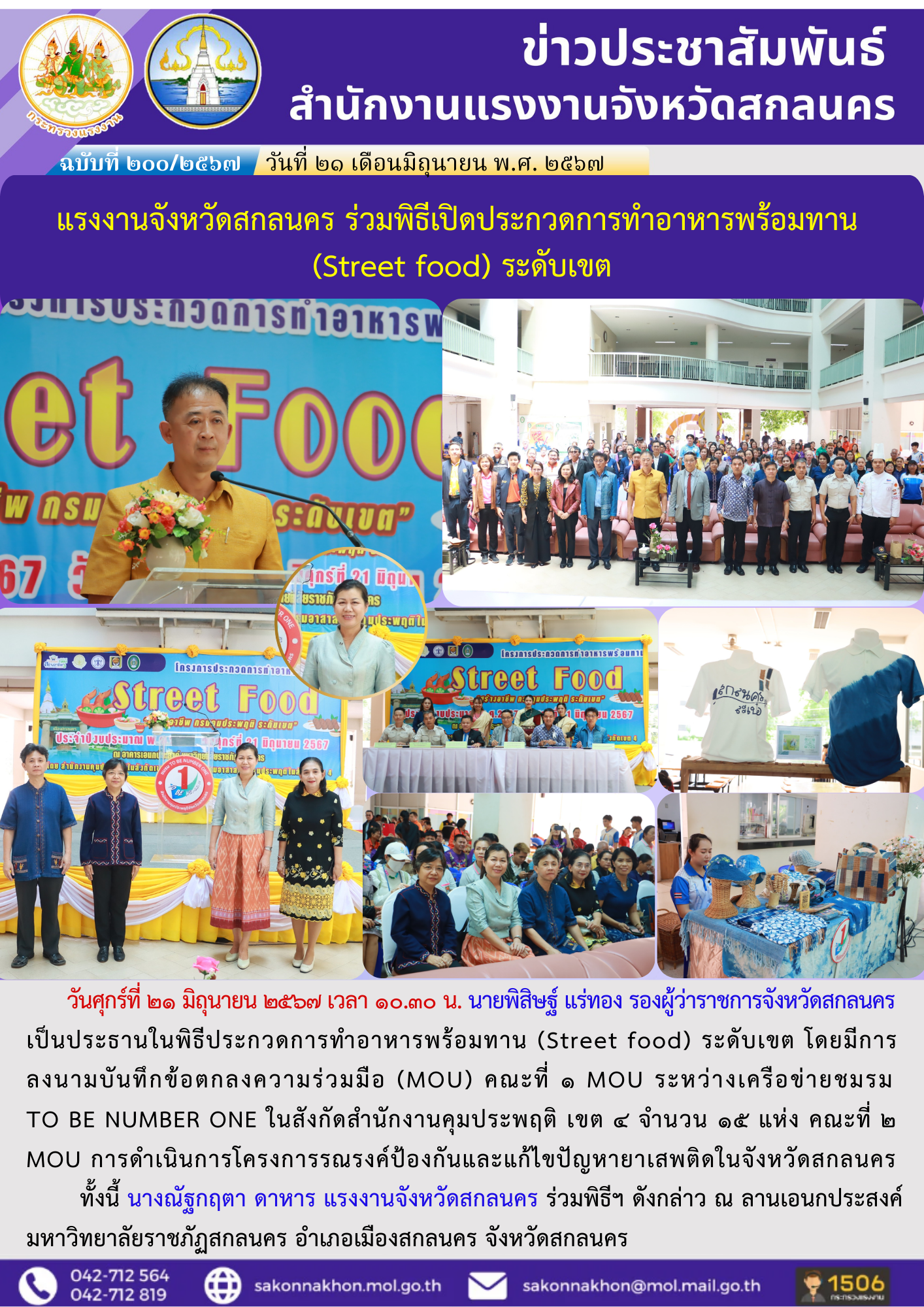 แรงงานจังหวัดสกลนคร ร่วมพิธีเปิดประกวดการทำอาหารพร้อมทาน (Street food) ระดับเขต