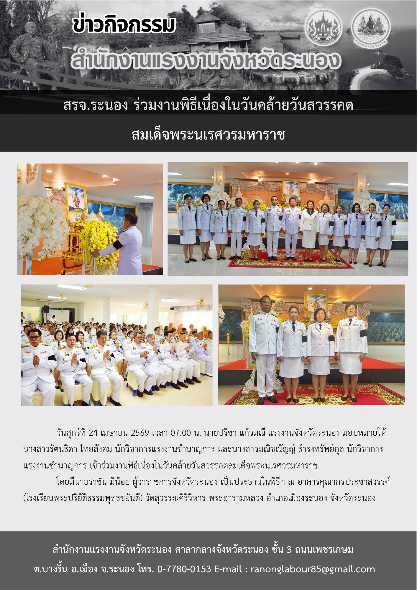 สรจ.ระนอง ร่วมงานพิธีเนื่องในวันคล้ายวันสวรรคต สมเด็จพระนเรศวรมหาราช