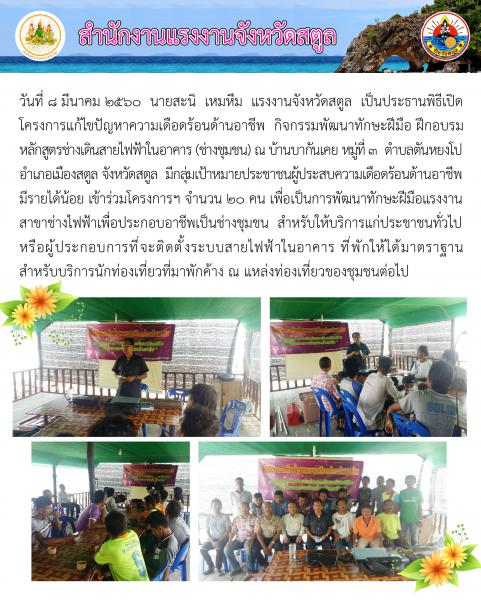 แรงงานจังหวัดสตูล เป็นประธานพิธีเปิด โครงการแก้ไขปัญหาความเดือดร้อนด้านอาชีพ