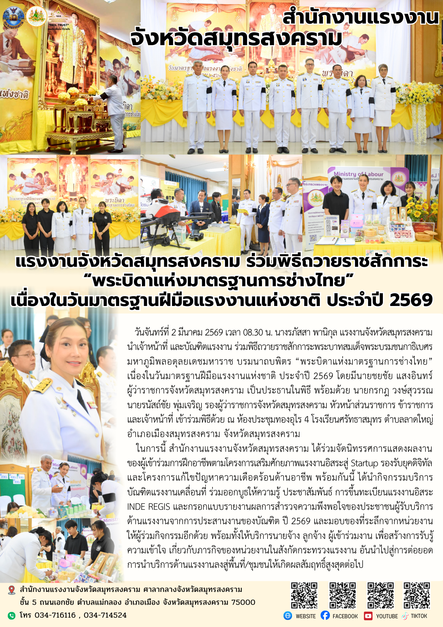 วันจันทร์ที่ 2 มีนาคม 2569 เวลา 08.30 น. นางรภัสสา พานิกุล แรงงานจังหวัดสมุทรสงคราม