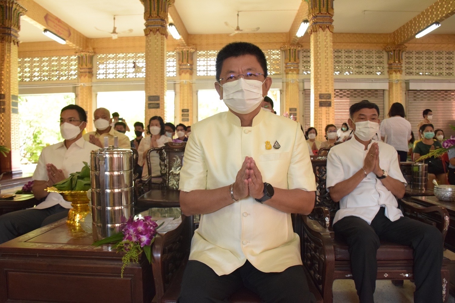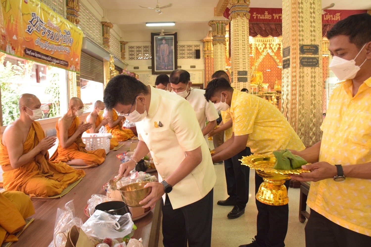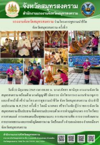 วันที่ 22 มิถุนายน 2565 เวลา 08.00 น. นางรภัสสา พานิกุล แรงงานจังหวัดสมุทรสงคราม พร้อมด้วย นางกัญญาศิริ นัยอรรถ นักวิชาการแรงงานชำนาญการ และเจ้าหน้าที่ เข้าร่วมโครงการชูธรรมนำชีวิต จังหวัดสมุทรสงคราม ประจำปีงบประมาณ พ.ศ.2565 ครั้งที่ 5 โดยมี นายขจร ศรีชวโนทัย ผู้ว่าราชการจังหวัดสมุทรสงคราม เป็นประธาน ซึ่งกิจกรรมประกอบด้วย การทำบุญตักบาตร การไหว้พระ การสวดมนต์ การแสดงตนเป็นพุทธมามะกะ การสมาทานศีล การถวายสังฆทาน การบรรยายธรรม และการเจริญจิตตภาวนา ณ วัดป้อมแก้ว ตำบลแม่กลอง อำเภอเมืองฯ จังหวัดสมุทรสงคราม