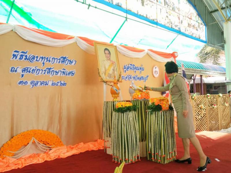 วันที่ 31 ตุลาคม 2562 เวลา 10.00 น. นางอังคณา ชิตะติตติ รองผู้ว่าราชการจังหวัดสระบุรี เป็นประธานในพิธีมอบทุนการศึกษามูลนิธิคุณพุ่ม ปีการศึกษา 2562 จำนวน 125 ทุนๆ ละ 5,000 บาท รวมเป็นเงินทั้งสิ้น 625,000 บาท (หกแสนสองหมื่นห้าพันบาทถ้วน) ณ อาคารโดมอเนกประสงค์ ศูนย์การศึกษาพิเศษประจำจังหวัดสระบุรี ทั้งนี้ นางสาวรัตนา ทองกลับ แรงงานจังหวัดสระบุรี เข้าร่วมเป็นเกียรติในพิธีมอบทุนการศึกษา ฯ ครั้งนี้ด้วย