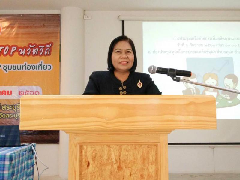 วันที่ 6 กันยายน 2561 เวลา 09.00 น. นางสาวรัตนา ทองกลับ แรงงานจังหวัดสระบุรี เป็นประธาน พิธีเปิดการอบรมโครงการประชุมเครือข่ายการเพิ่มผลิตภาพแรงงาน ซึ่งจัดโดยสำนักงานพัฒนาฝีมือแรงงานสระบุรี ณ ห้องประชุม ศูนย์โอทอปคอมเพล็กซ์พุแค ตำบลพุแค อำเภอเฉลิมพระเกียรติ จังหวัดสระบุรี โดยมีผู้เข้าร่วมประชุมที่เป็นผู้ประกอบการ SME กลุ่ม OTOP และวิสาหกิจชุมชน จำนวน 70 คน ทั้งนี้มีหัวหน้าส่วนราชการสังกัดกระทรวงแรงงานจังหวัดสระบุรี เข้าร่วมเป็นเกียรติในพิธีเปิดครั้งนี้ด้วย