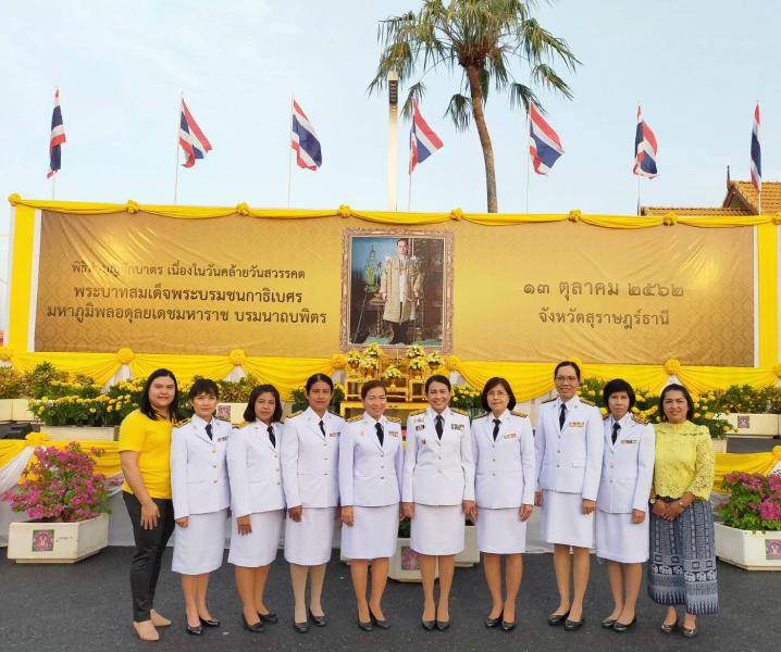 วันที่ 13 ตุลาคม 2562 นางสาวอารีย์ การธิโร แรงงานจังหวัดสุราษฎร์ธานี พร้อมหัวหน้าส่วนและผู้แทนหน่วยงานสังกัดกระทรวงแรงงาน นำข้าราชการ เจ้าหน้าที่ หน่วยงานในสังกัดกระทรวงแรงงาน จังหวัดสุราษฎร์ธานี เข้าร่วมกิจกรรมพิธีบำเพ็ญกุศลน้อมรำลึกในวันคล้ายวันสวรรคต พระบาทสมเด็จพระบรมชนกาธิเบศร มหาภูมิพลอดุลยเดชมหาราช บรมนาถบพิตร ดังนี้
