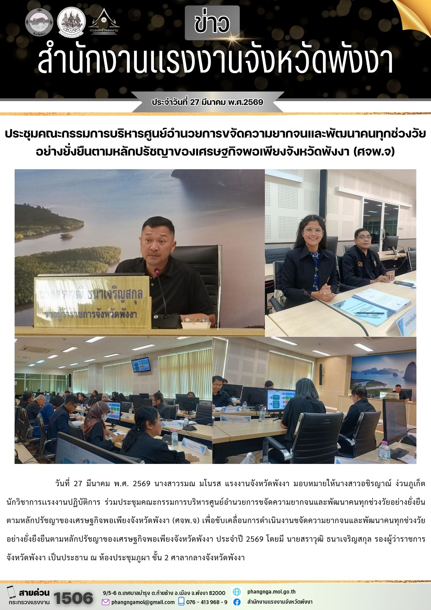 สรจ.พังงา ร่วมประชุมคณะกรรมการบริหารศูนย์อำนวยการขจัดความยากจนและพัฒนาคนทุกช่วงวัยอย่างยั่งยืนตามหลักปรัชญาของเศรษฐกิจพอเพียงจังหวัดพังงา (ศจพ.จ)
