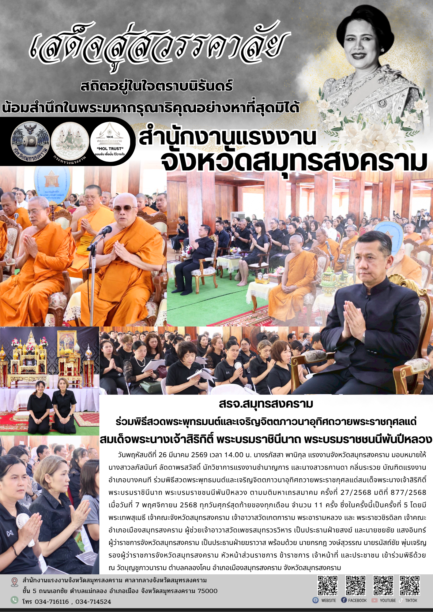 สรจ.สมุทรสงคราม ร่วมพิธีสวดพระพุทธมนต์และเจริญจิตตภาวนาอุทิศถวายพระราชกุศลแด่ สมเด็จพระนางเจ้าสิริกิติ์ พระบรมราชินีนาถ พระบรมราชชนนีพันปีหลวง