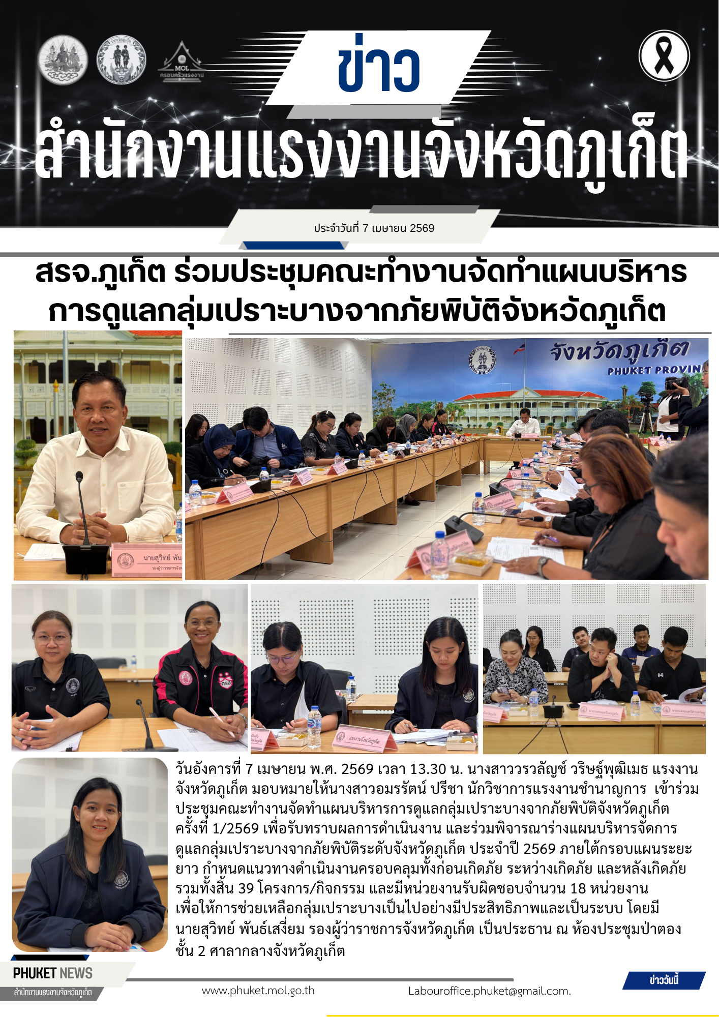 สรจ.ภูเก็ต ร่วมประชุมคณะทำงานจัดทำแผนบริหารการดูแลกลุ่มเปราะบางจากภัยพิบัติจังหวัดภูเก็ต