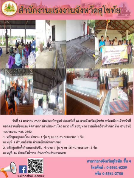 แรงงานจังหวัดสุโขทัย พร้อมด้วยเจ้าหน้าที่ออกตรวจเยี่ยมและติดตามการดำเนินงานโครงการแก้ไขปัญหาความเดือดร้อนด้านอาชีพ ประจำปีงบประมาณ พ.ศ. 2562