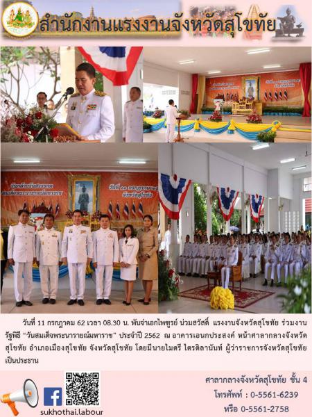 แรงงานจังหวัดสุโขทัย ร่วมงานรัฐพิธี “วันสมเด็จพระนารายณ์มหาราช” ประจำปี 2562