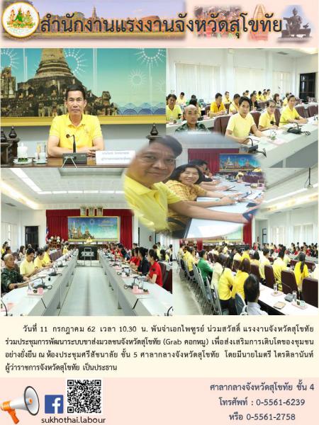 แรงงานจังหวัดสุโขทัย ร่วมประชุมการพัฒนาระบบขาส่งมวลชนจังหวัดสุโขทัย (Grab คอกหมู) เพื่อส่งเสริมการเติบโตของชุมชนอย่างยั่งยืน