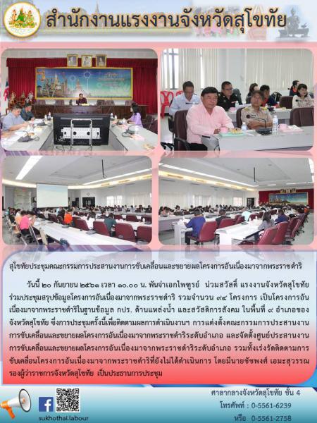 แรงงานจังหวัดสุโขทัย ร่วมประชุมคณะกรรมการประสานงานการขับเคลื่อนและขยายผลโครงการอันเนื่องมาจากพระราชดำริ