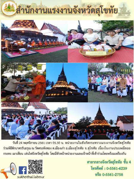 แรงงานจังหวัดสุโขทัย ร่วมพิธีตักบาตรรับอรุณ เนื่องในงานประเพณีลอยกระทง เผาเทียน เล่นไฟจังหวัดสุโขทัย
