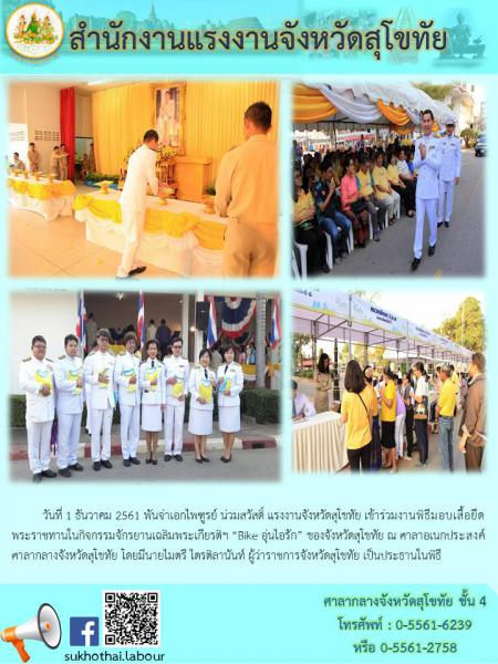 แรงงานจังหวัดสุโขทัย เข้าร่วมพิธีมอบเสื้อยืดพระราชทานในกิจกรรมจักรยานเฉลิมพระเกียรติฯ “Bike อุ่นไอรัก”