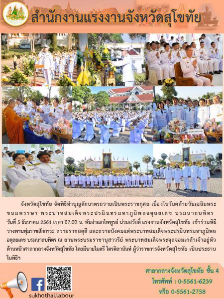 แรงงานจังหวัดสุโขทัย เข้าร่วมพิธีวางพานพุ่มราชสักการะ ถวายราชสดุดี และถวายบังคมแด่พระบาทสมเด็จพระปรมินทรมหาภูมิพลอดุลยเดช บรมนาถบพิตร