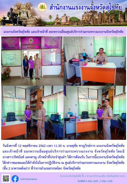 แรงงานจังหวัดสุโขทัย และเจ้าหน้าที่ ออกตรวจเยี่ยมศูนย์บริการร่วมกระทรวงแรงงาน จังหวัดสุโขทัย