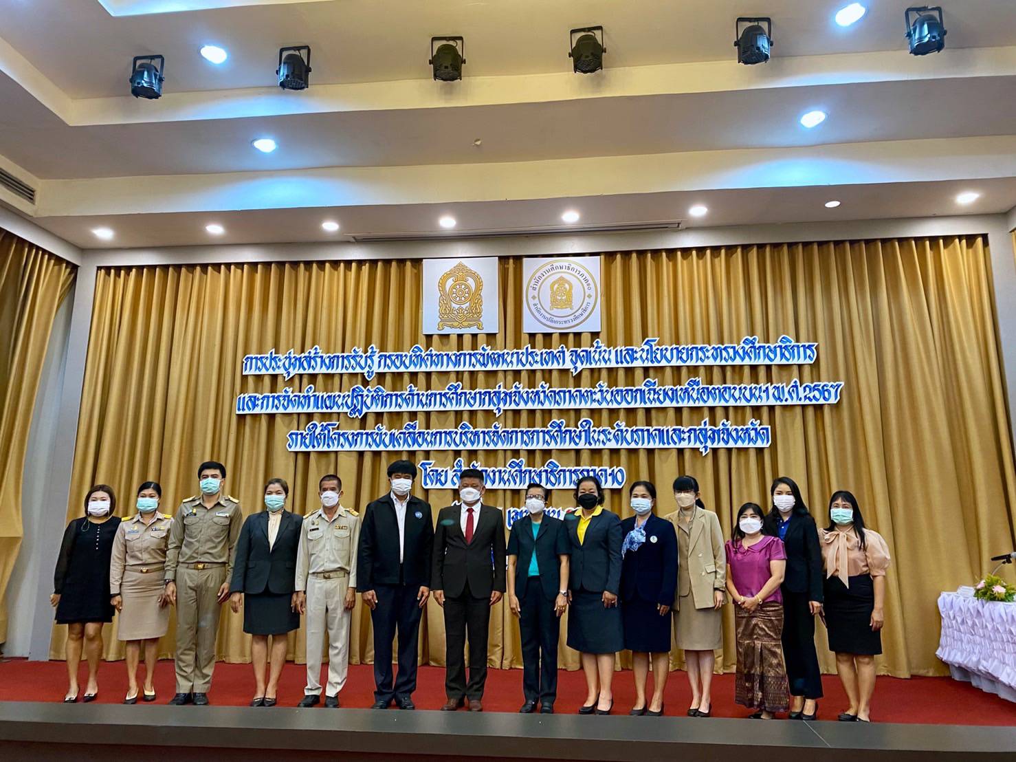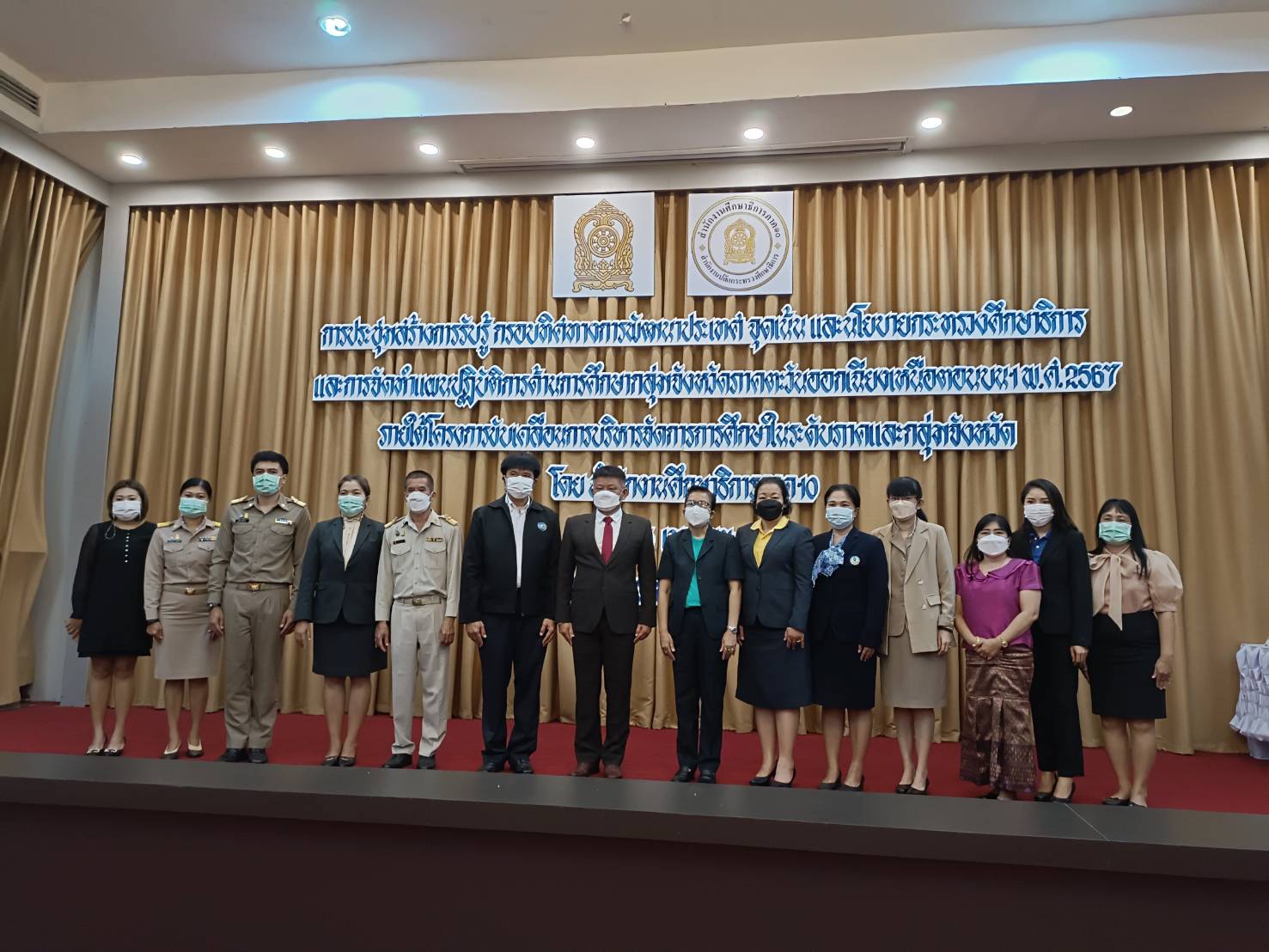 วันที่ 25 เมษายน 2565 เวลา 09.00 น. นางสมหมาย เทียมกัน แรงงานจังหวัดหนองคาย มอบหมายให้นางสาวลีลาวดี ศรีภูธร นักวิชาการแรงงานชำนาญการ เข้าร่วมประชุมสร้างการรับรู้ กรอบทิศทางการพัฒนาประเทศ จุดเน้นและนโยบาย กระทรวงศึกษาธิการ และการจัดทำแผนปฏิบัติการ ด้านการศึกษากลุ่มจังหวัดภาคตะวันออกเฉียงเหนือตอนบน 1 พ.ศ.2567 ภายใต้โครงการขับเคลื่อน การบริหารจัดการการศึกษาในระดับภาคและกลุ่มจังหวัด ณ โรงแรมอัศวรรณ อำเภอเมืองหนองคาย จังหวัดหนองคาย โดยมีว่าที่ร้อยเอก วิสาร ปัญญชุณห์ รองศึกษาธิการภาค 10 รักษาการในตำแหน่ง ศึกษาธิการภาค 10 เป็นประธานในพิธีเปิดโครงการ